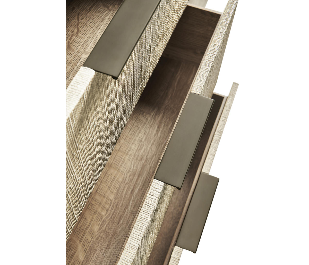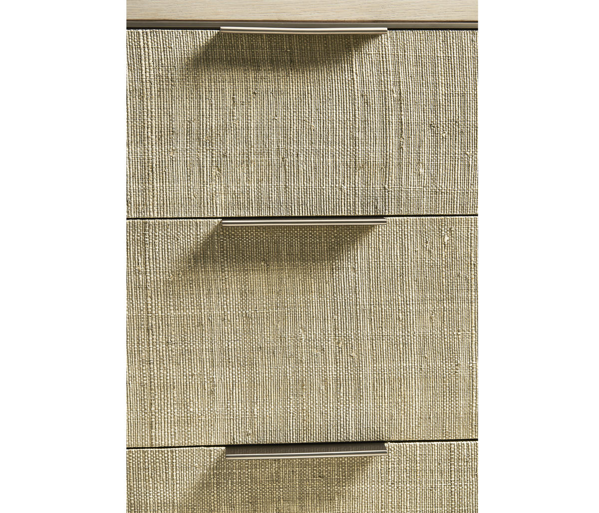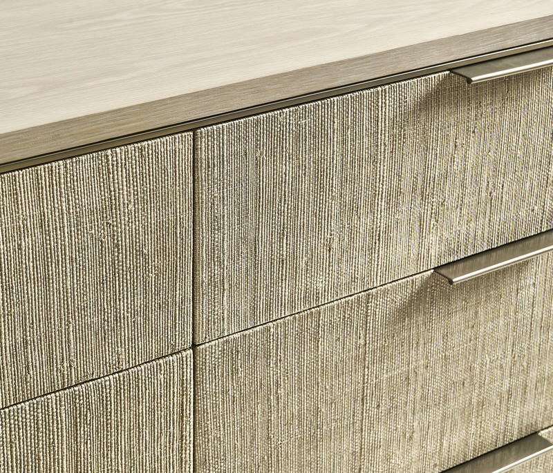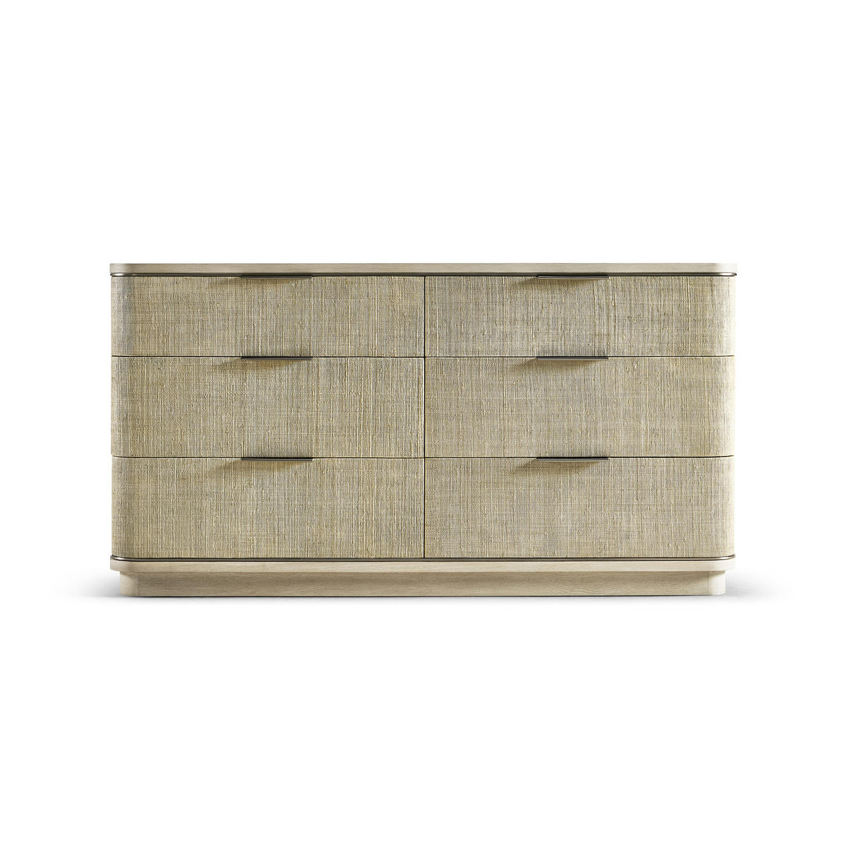 Born from passion with incredibly crafted aesthetic details, the Seiche Woven Wave Double Dresser’s captivating lines and sublime curves promise a new level of interior expression. Handwoven Grasscloth wraped around six Bleached Oak drawers with custom cast hardware in an eclectic mix of materials that captures a dazzling sense of organic movement and form.
