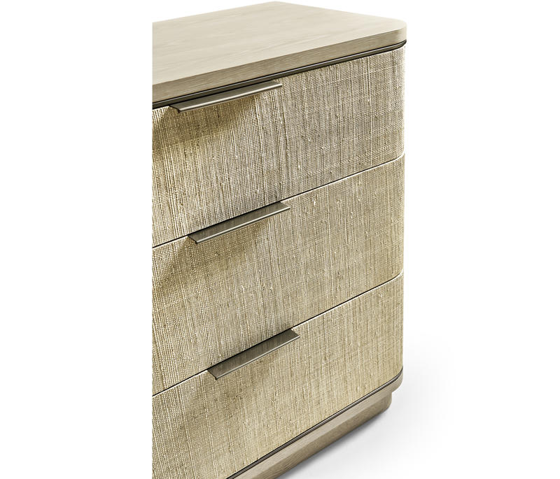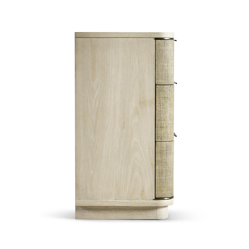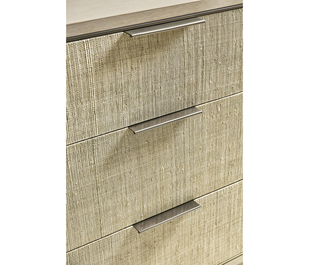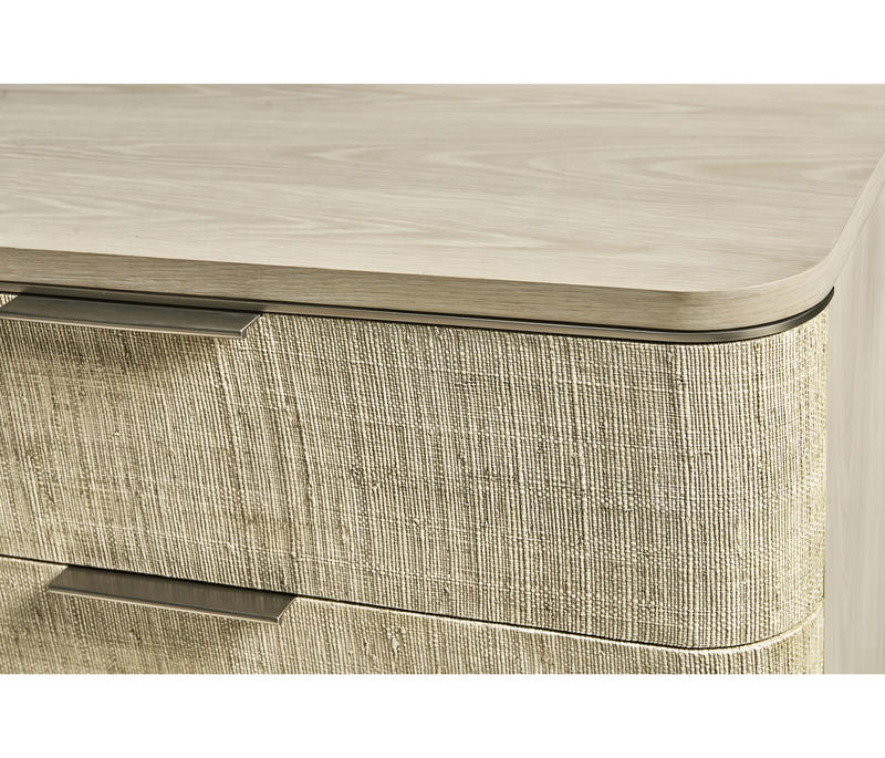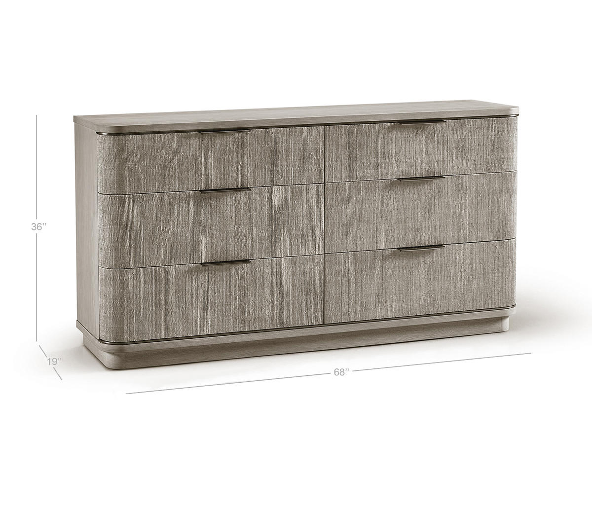 Born from passion with incredibly crafted aesthetic details, the Seiche Woven Wave Double Dresser’s captivating lines and sublime curves promise a new level of interior expression. Handwoven Grasscloth wraped around six Bleached Oak drawers with custom cast hardware in an eclectic mix of materials that captures a dazzling sense of organic movement and form.