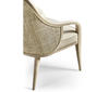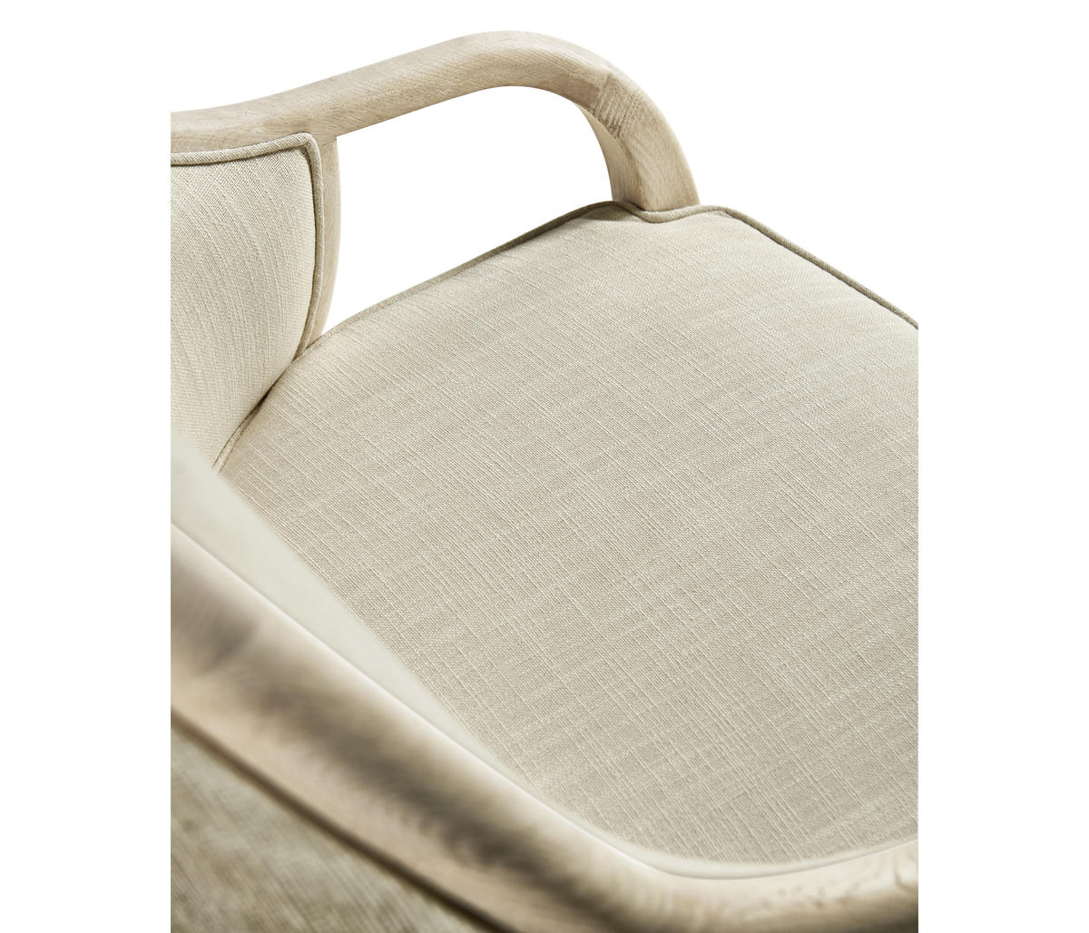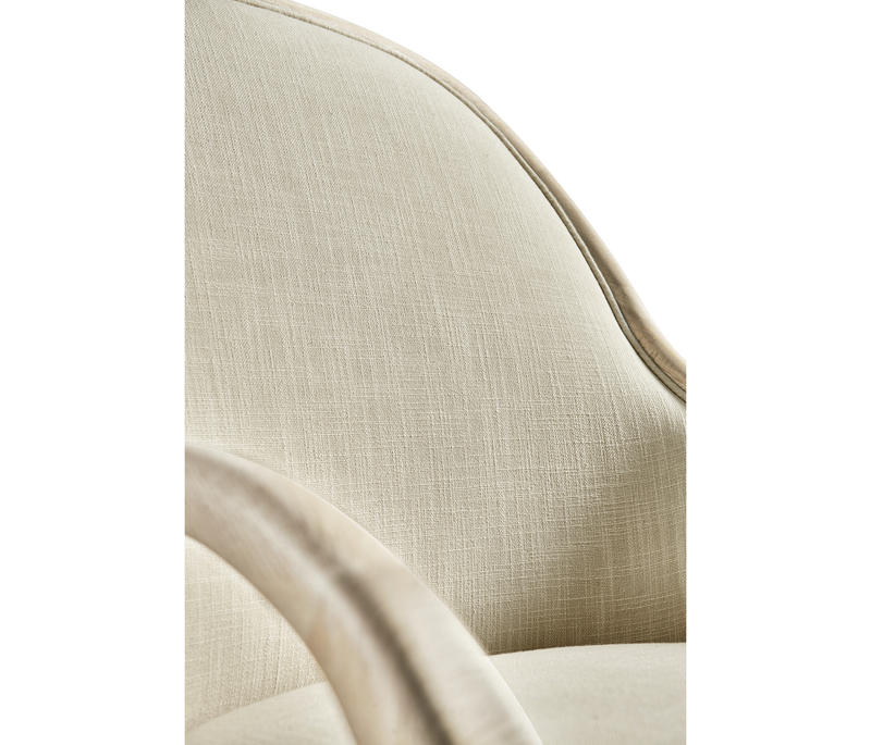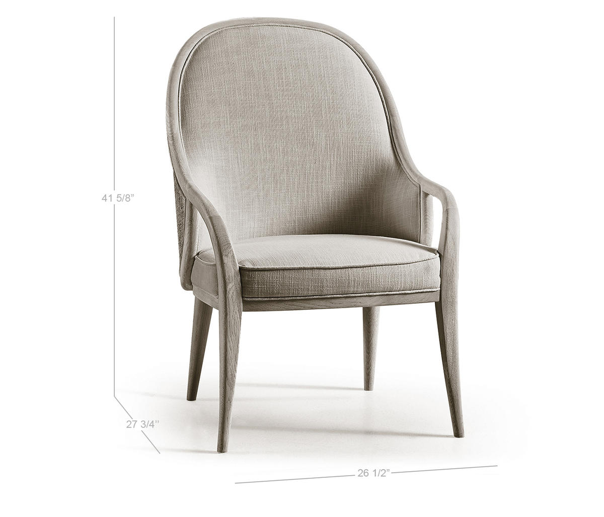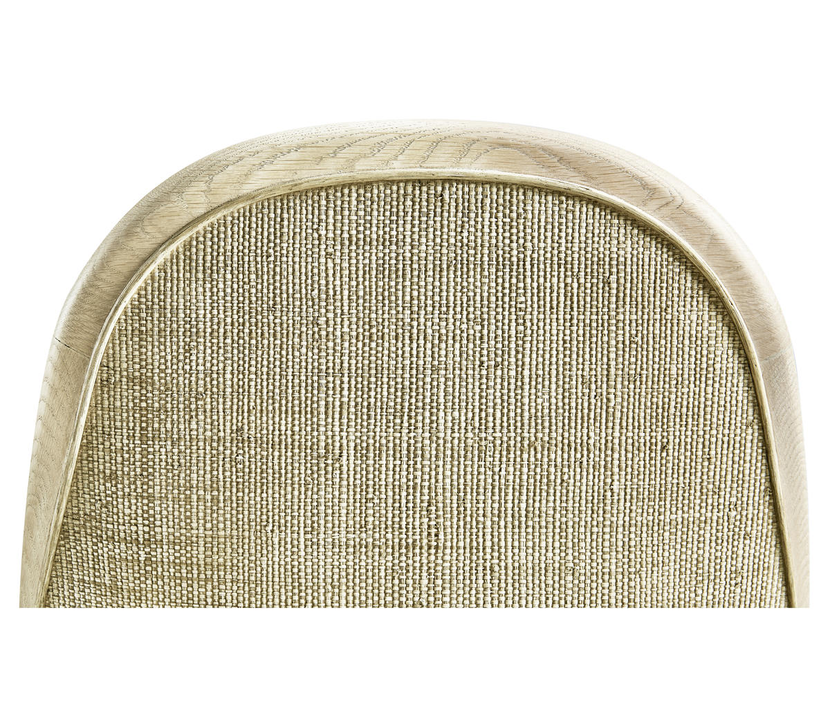 Comfortable and elegant, this Jonathan Charles dining arm chair embodies the beauty of simplicity with organic forms and clean lines for a contemporary aesthetic. The creamy texture of the fabric instills wonder and a deep sense of connection to the natural world. Inspired by the deep wells where water rests and stills, this chair, solidified with an oak frame in white washed oak, provides the perfect luxuriating dining experience for modern coastal interiors.