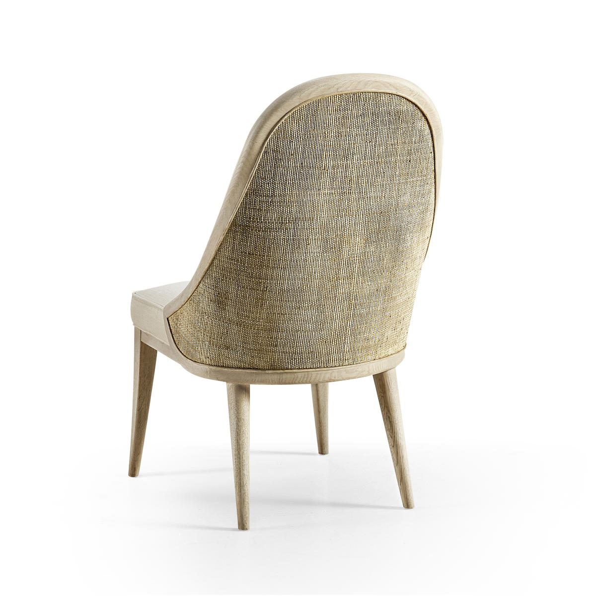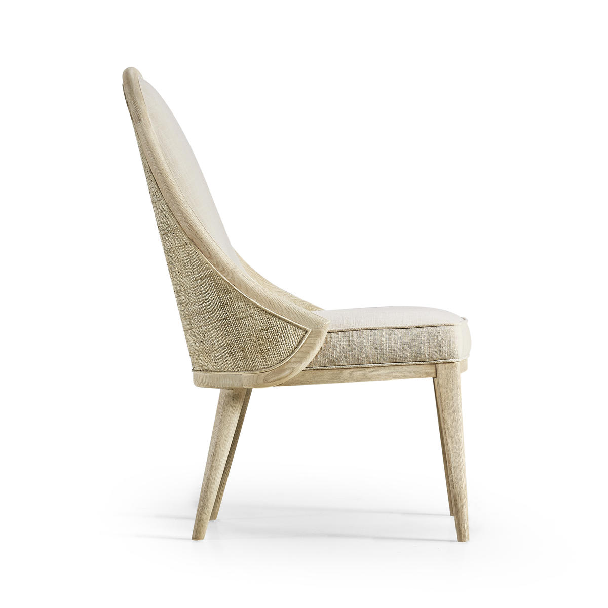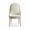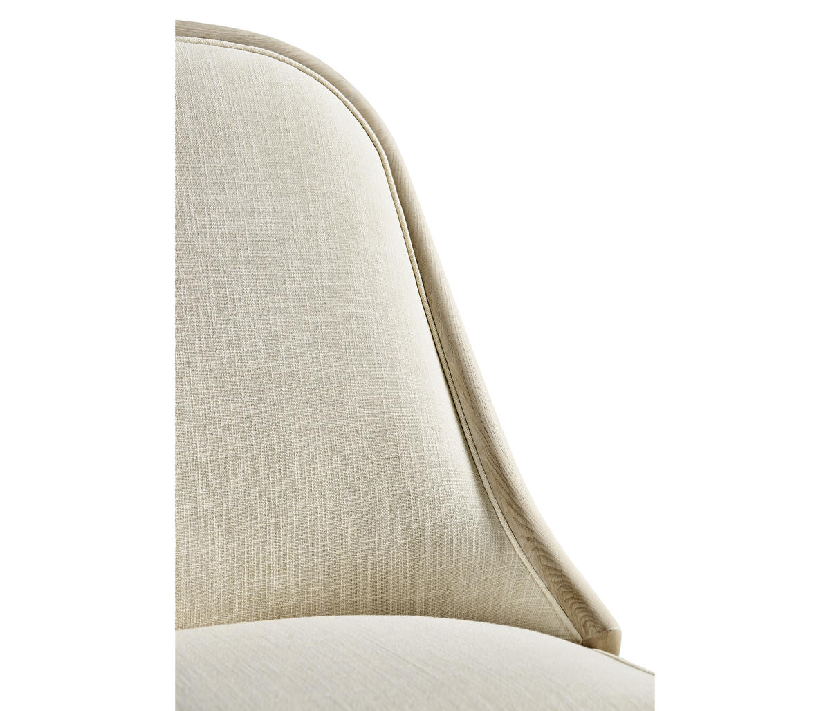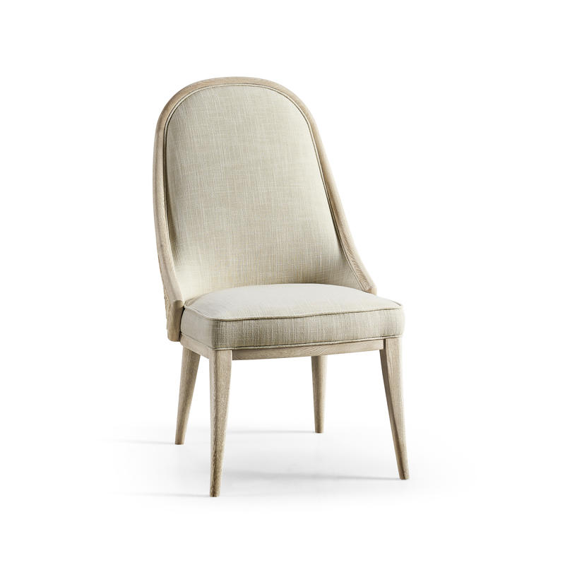 Comfortable and elegant, this Jonathan Charles dining arm chair embodies the beauty of simplicity with organic forms and clean lines for a contemporary aesthetic. The creamy texture of the fabric instills wonder and a deep sense of connection to the natural world. Inspired by the deep wells where water rests and stills, this chair, solidified with an oak frame in white washed oak, provides the perfect luxuriating dining experience for modern coastal interiors.