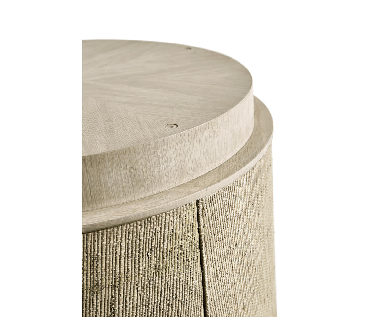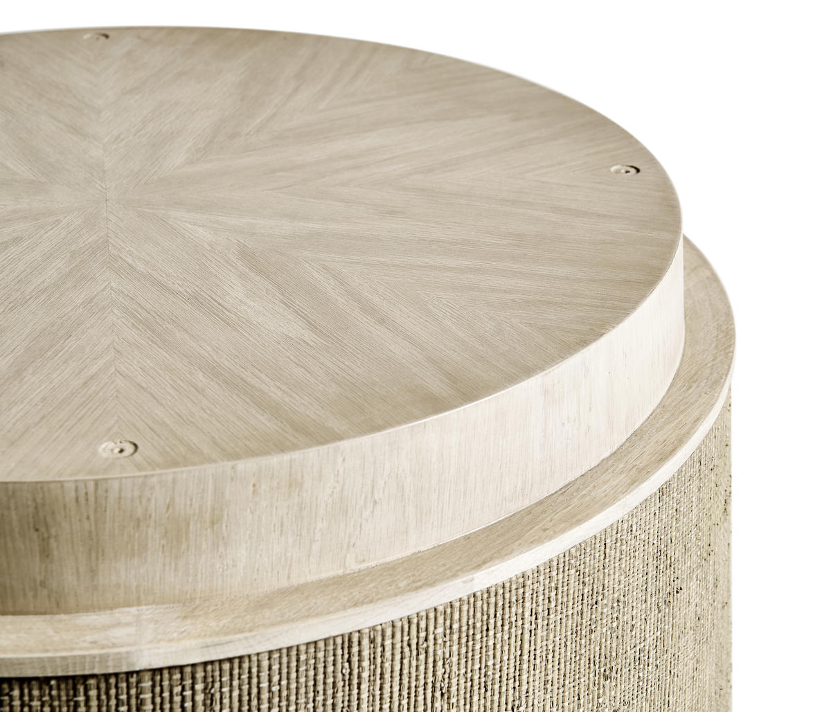 The Abyss single pedestal dining table from Jonathan Charles’ bespoke Water portfolio embodies an earthy elegance all its own. Unending symmetry and stoic simplicity come together in this expertly crafted pedestal made of oak solids and veneers. Wrapped in sumptuous hand woven grass cloth, Abyss is a one-of-a-kind statement-making piece for any living space. Pedestal can accommodate a round glass top 54-72 inches or a rectangle glass top 42-44 inches wide.
