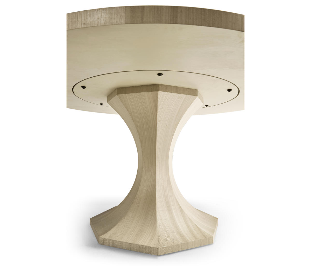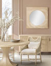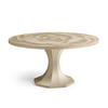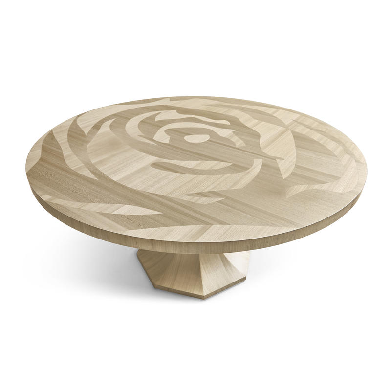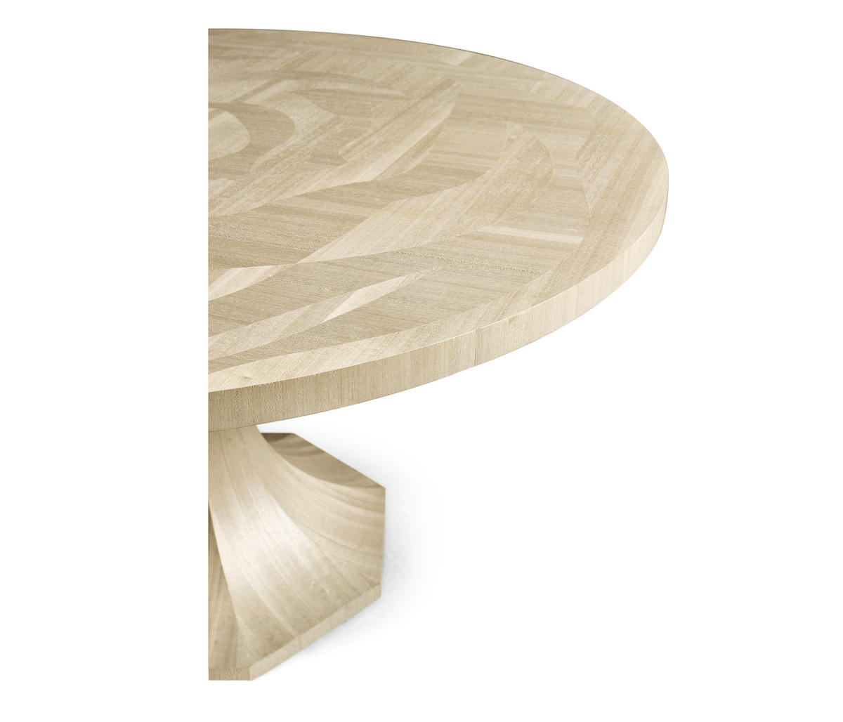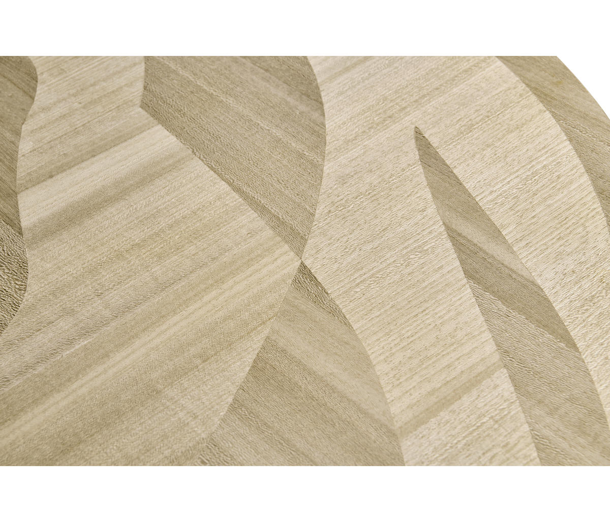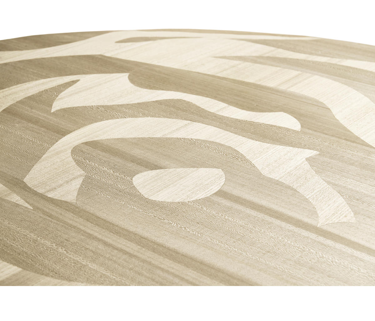 The Tidepool Dining Table is mesmerizing with its stunning Koto veneer marquetry, meticulously arranged in elegant patterns that mimic the intricate formations of a tidepool. The natural grain and rich tones of the Koto veneer add depth and warmth to the design, creating a captivating focal point that brings both artistry and tranquility to any dining space. This table invites gatherings and conversations, blending beauty with functionality to create an inviting atmosphere for shared meals and memories.
