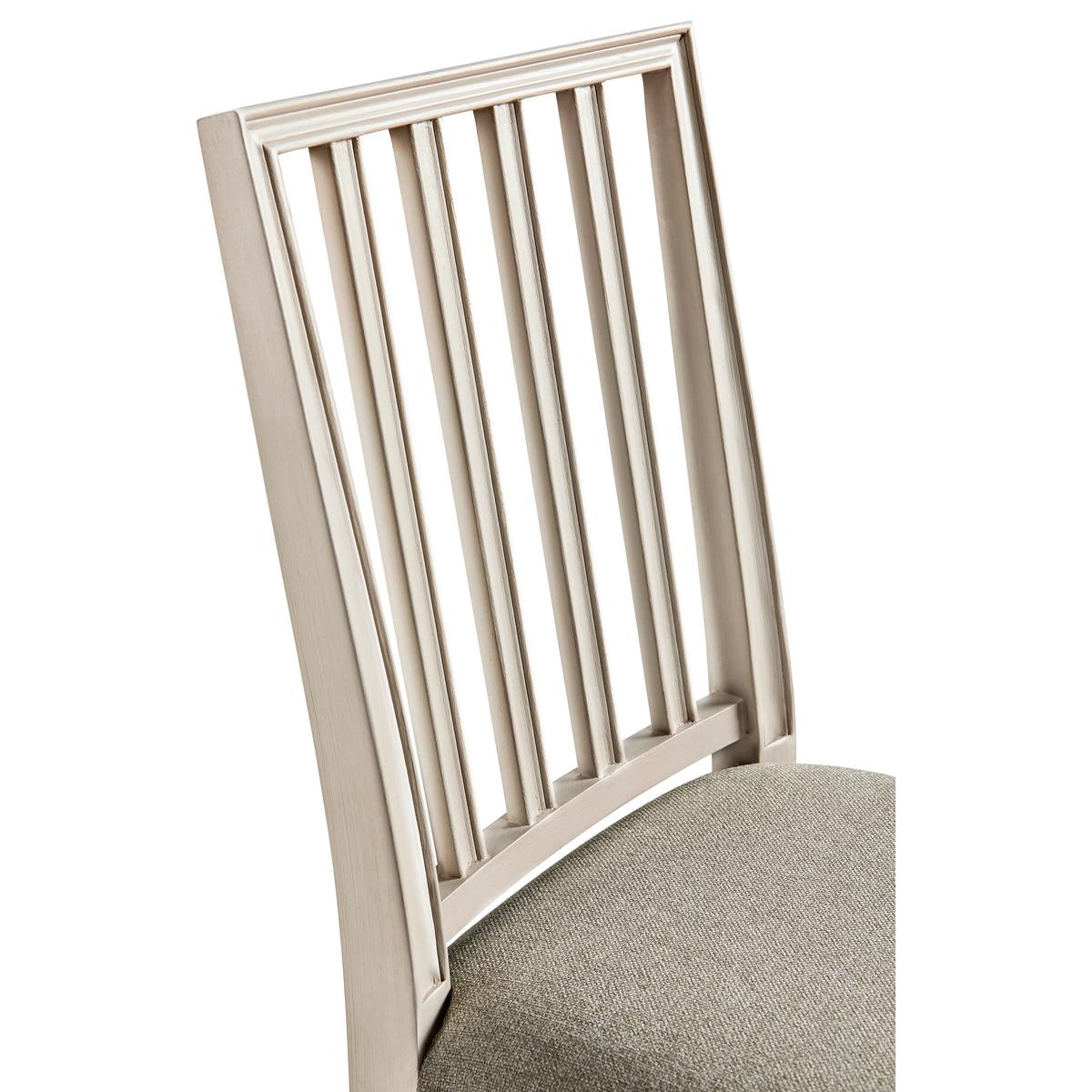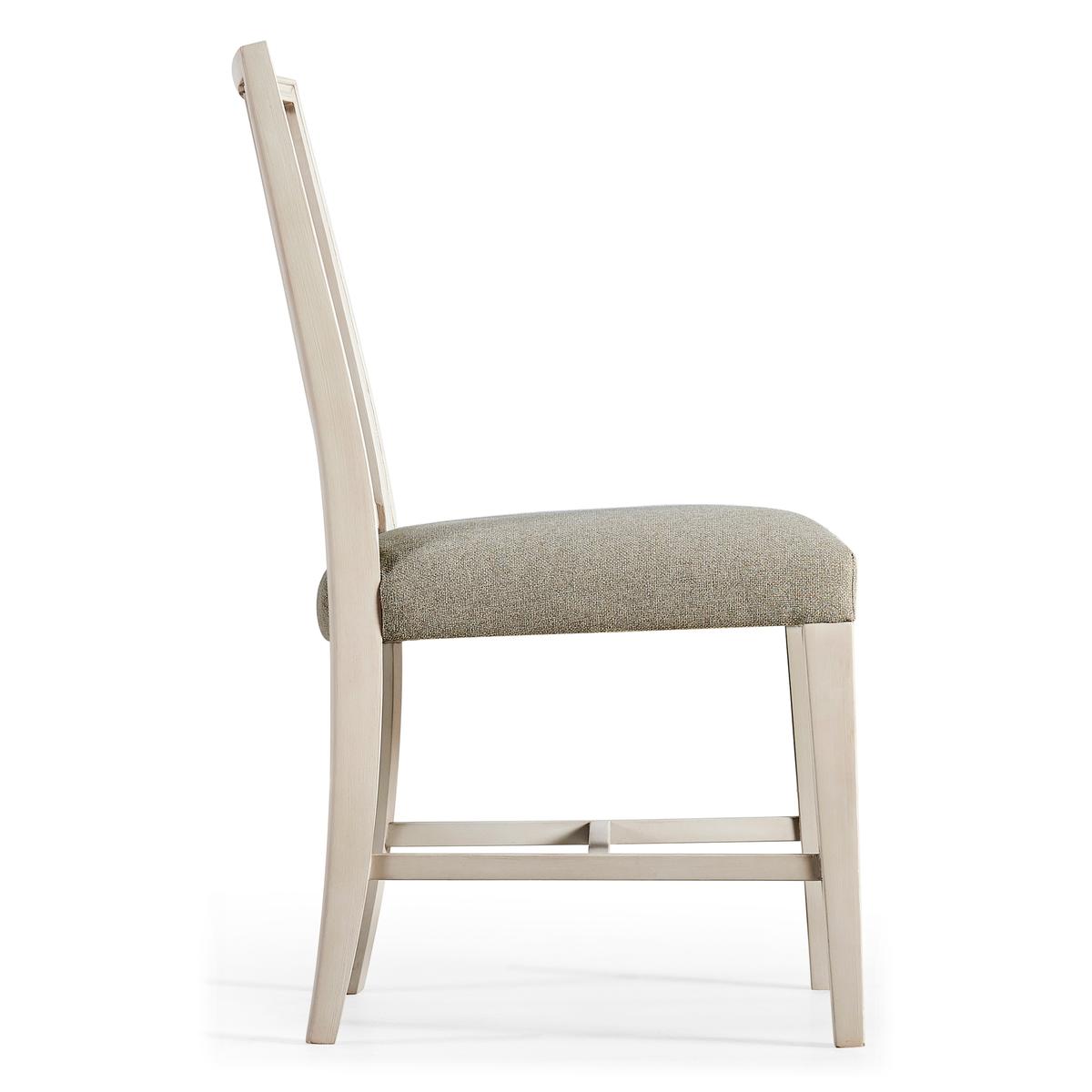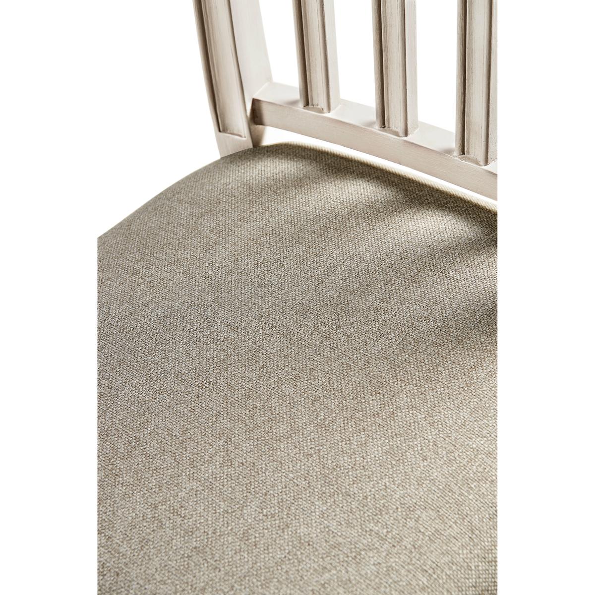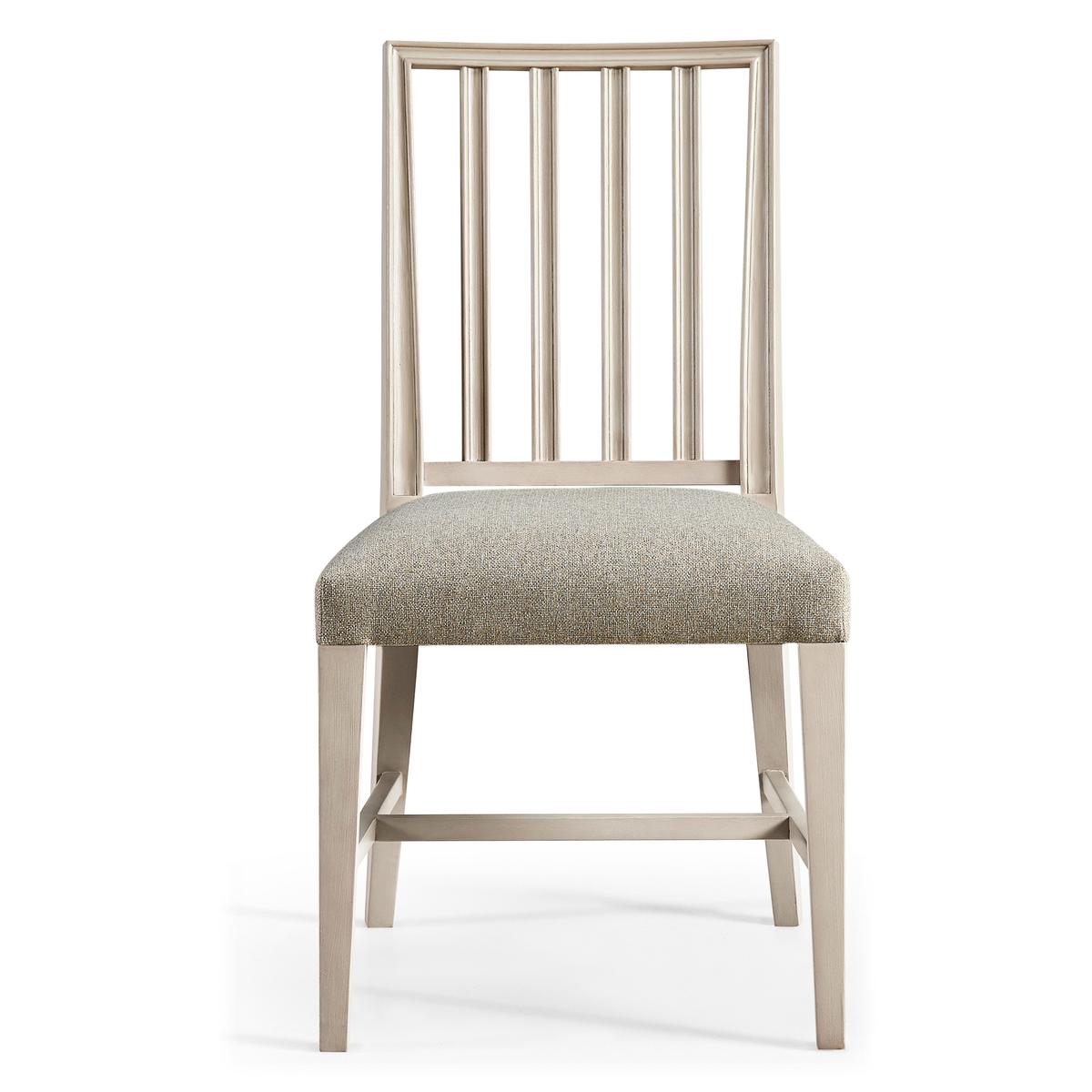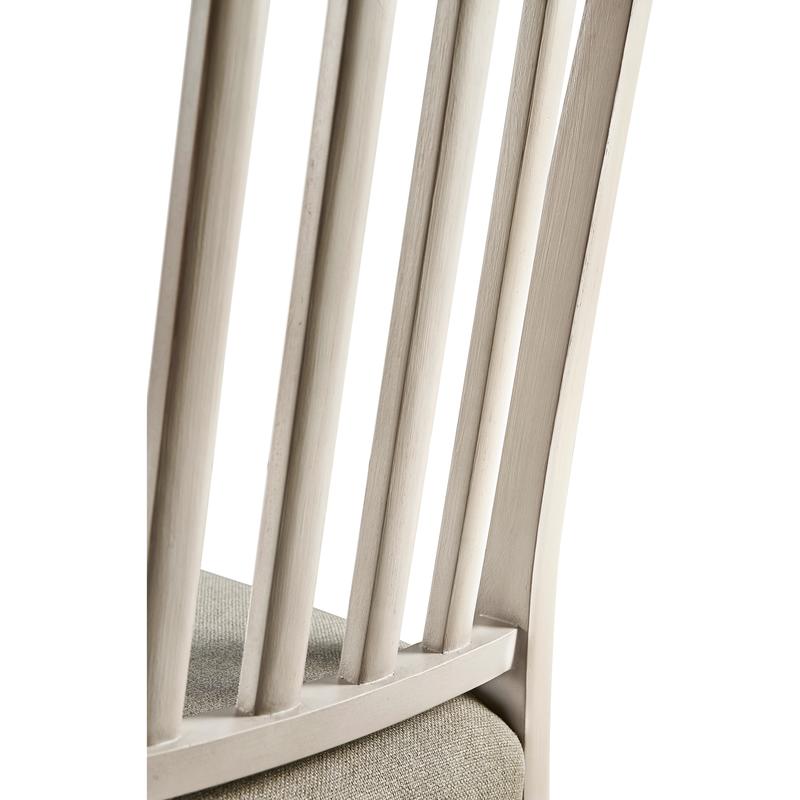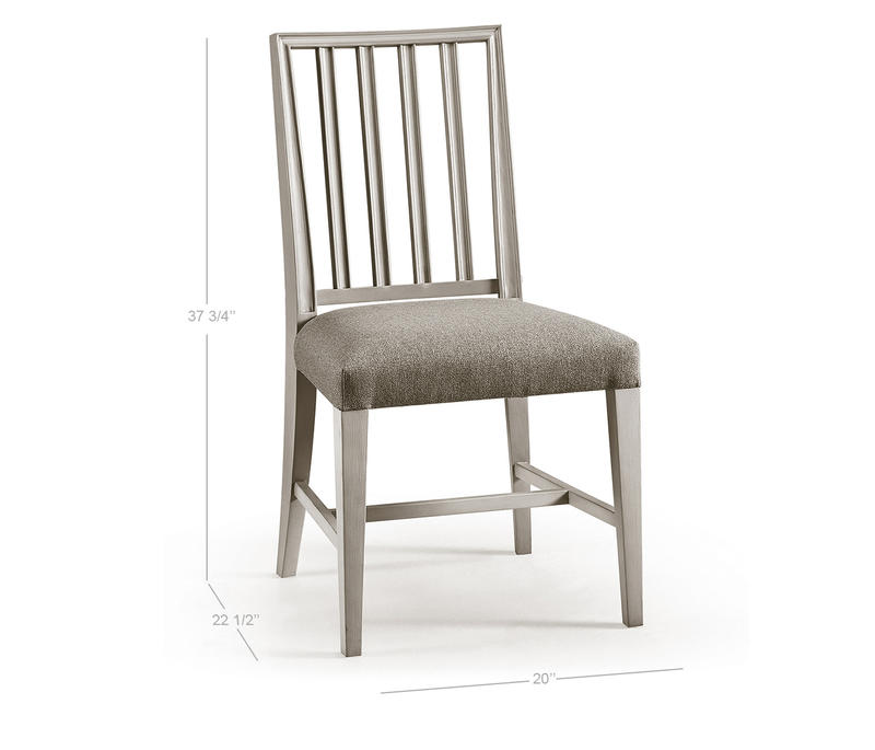 Jonathan Charles' Umbra Swedish side chair is the pulchritude of simplicity, with pristine forms and clean lines capable of dressing a dining space up or down with ease. Positioned at its heart and instilling a sense of unearthly calm is a delightfully plush cushion upholstered in a creamy oatmeal performance fabric for durability and understated elegance. Constructed from solid beech wood and finished with a thirsty London mist, this refined Swedish chair design is a conduit into the timeless essence of communing.