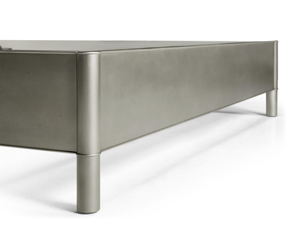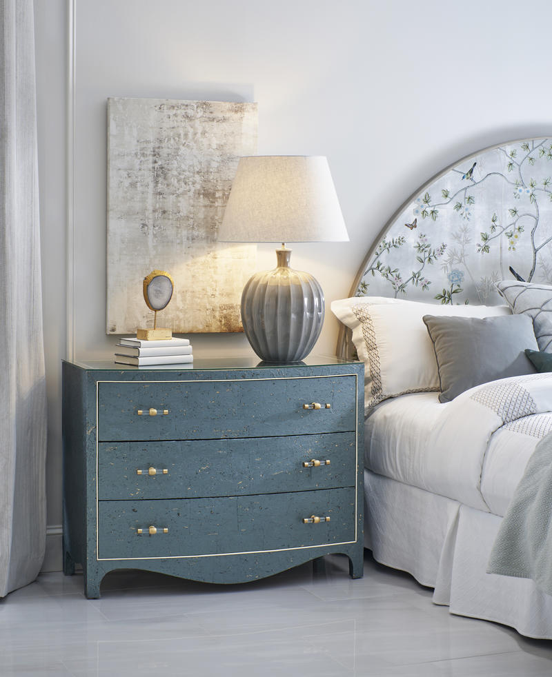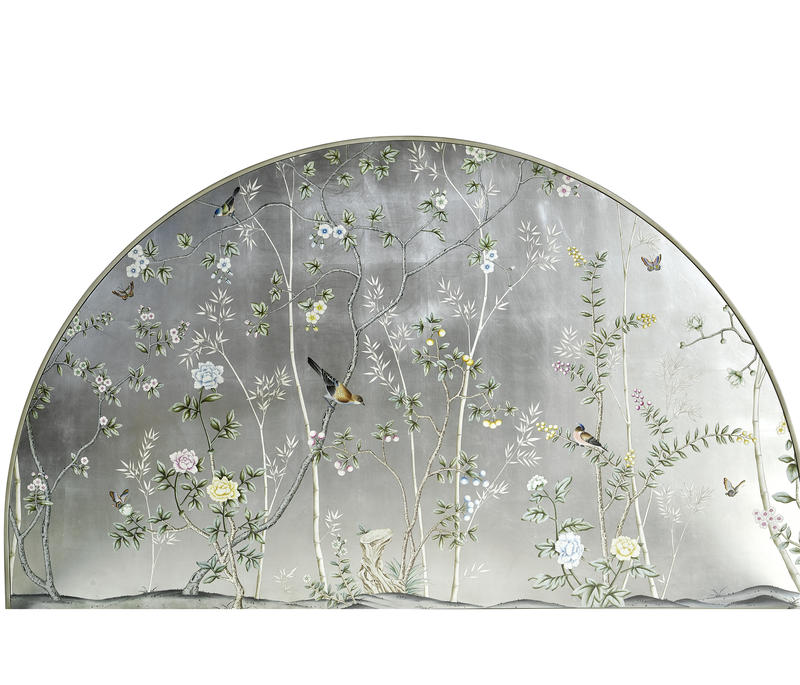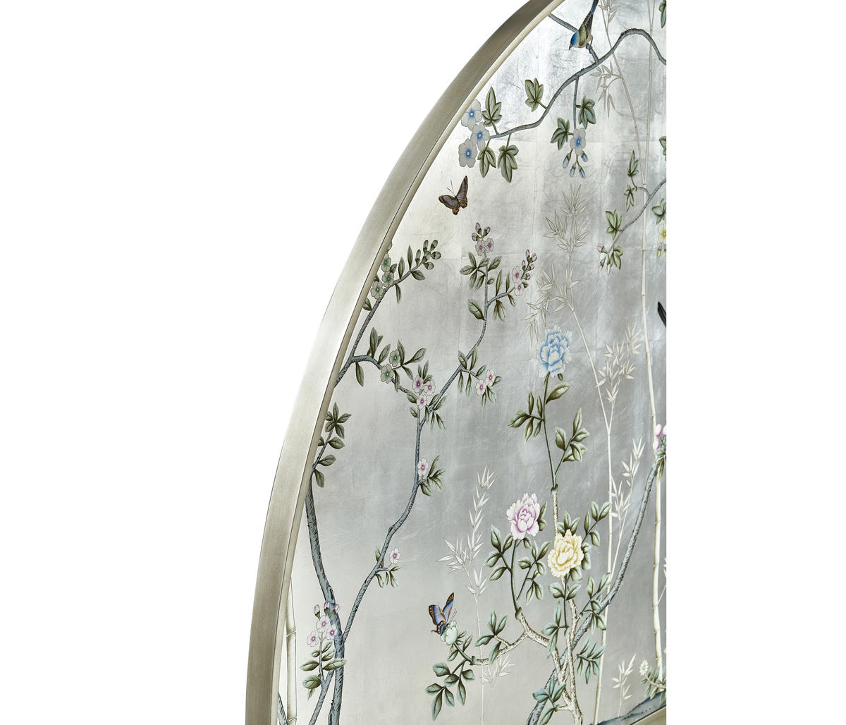 The Shimmering Moon half moon panel bed from Jonathan Charles’ esteemed Serene portfolio is the pinnacle of ornamental expression. Hand painted nature scenes dance across a blanket of glistening silver leaf in a masterful display of luminosity and depth that ignites fascination and draws the eye from across the room. Finished in lacquered white dove, the solid beech wood frame built by Jonathan Charles’ world-renowned craftsmen and women possesses the long lasting value and quality construction characteristic of heirloom antiques. A unique and cherished statement piece, Shimmering Moon will serve as an enchanting presence for generations.