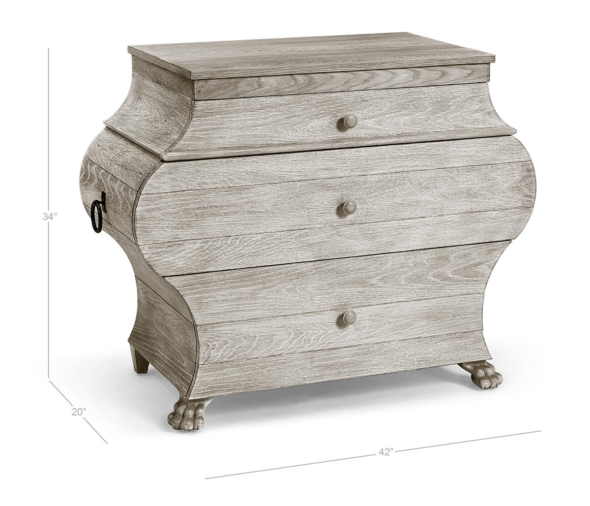 Crafted entirely from acacia wood and finished in a soft whitewashed tone, the Gatcombe bombe chest radiates a sense of warmth and timeless beauty. The finish highlights the natural grain of the wood, creating a piece that's both understated and striking. The paw foot detail adds a charming touch to the chest's design. This small but impactful feature pays homage to classic furniture styles, infusing the piece with a hint of nostalgia. With three drawers, this chest offers ample storage space for your belongings. Whether used in a bedroom, living room, or hallway, you'll find a designated spot for everything, keeping your space organized and clutter-free.