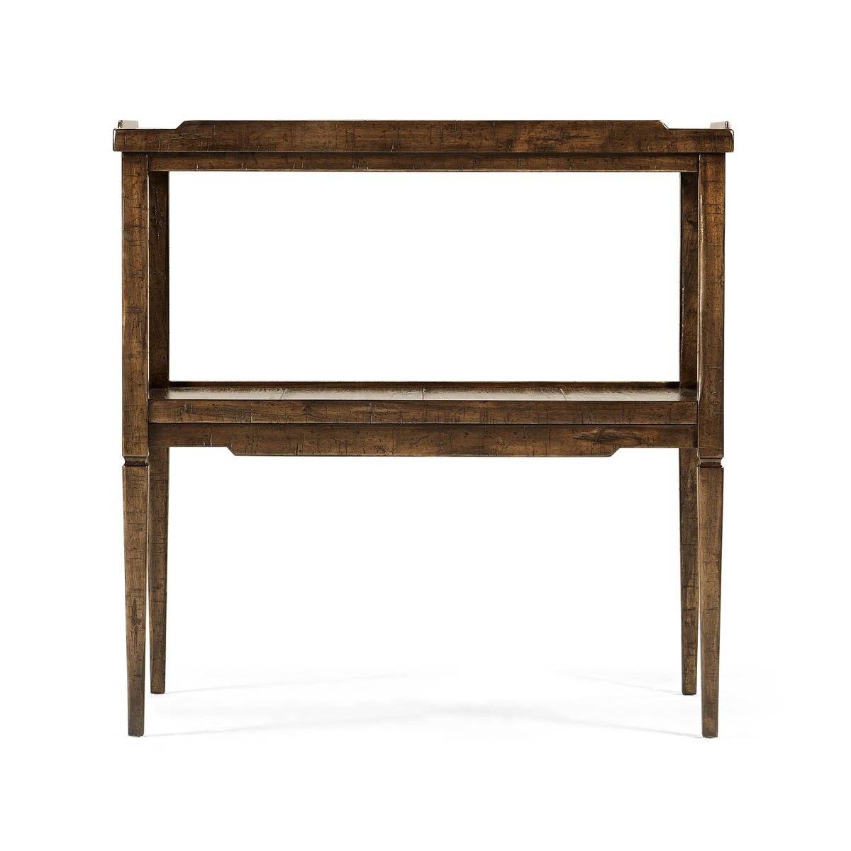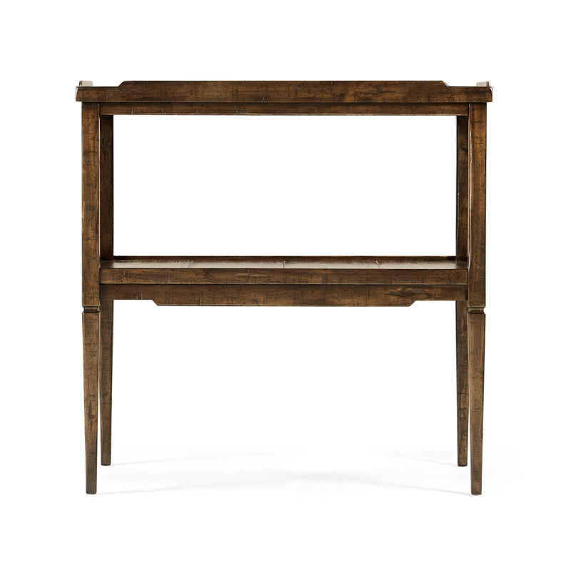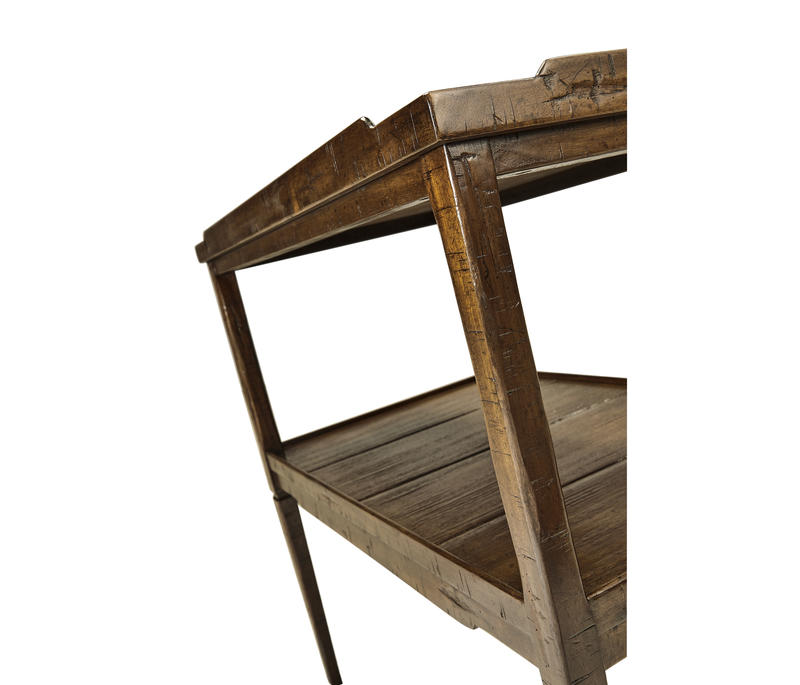 French country style walnut side table with heavily distressed finish on the top and under tier. (Old code: 495234)