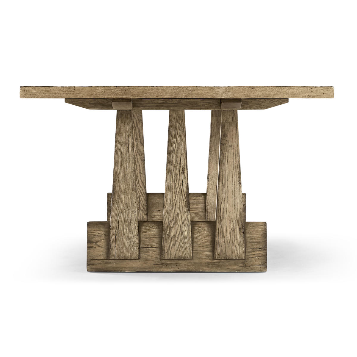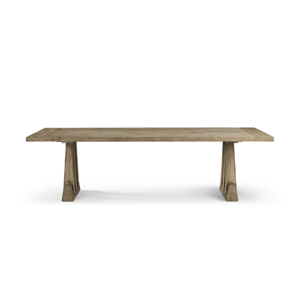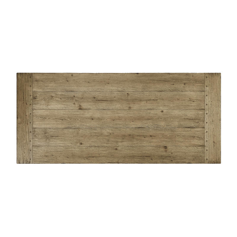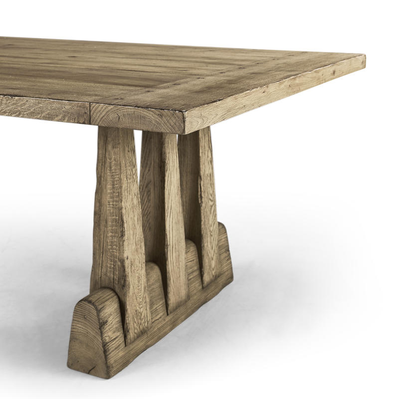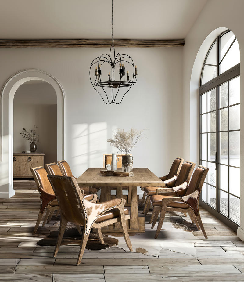 The Echo Canyon Rectangular Table is perfect blend of classic form and refined rustic charm. Crafted from solid wood, its standout feature is the double pedestal base with three graceful arches, adding a touch of architectural elegance to its sturdy build. Finished in a rich Faded Oak, this table seamlessly complements any interior. Measuring 124 inches, the spacious fixed tabletop comfortably accommodates 8 people, making it ideal for both family meals and entertaining guests.