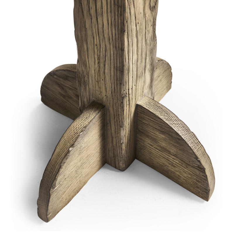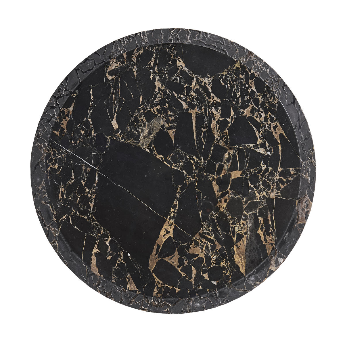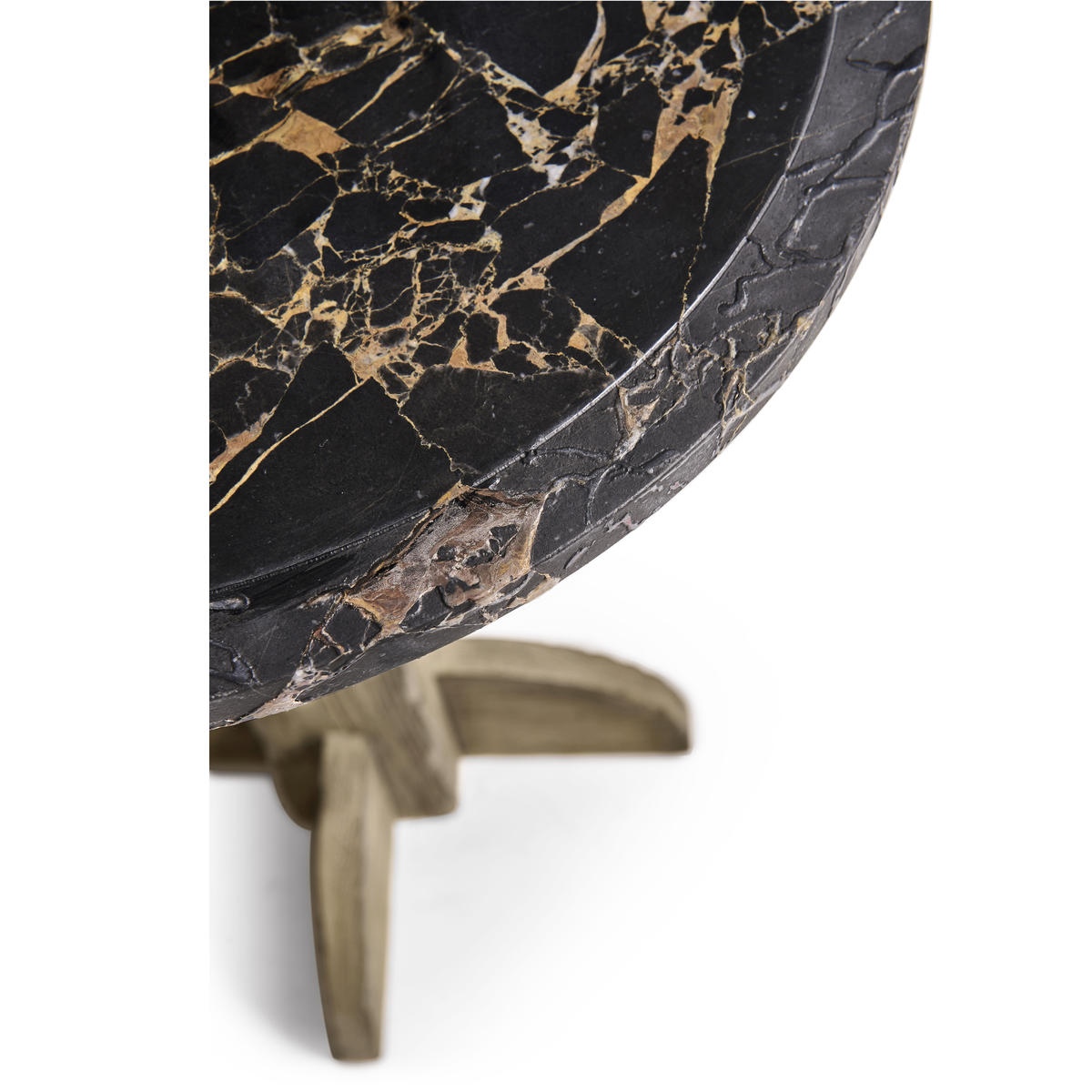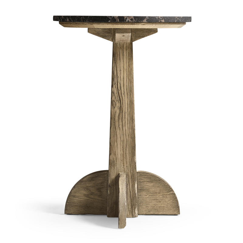 The Echo Canyon Round Side Table combines timeless sophistication with artistic flair. A dramatic black marble top rests on a sculptural wood base, giving this piece an air of refined luxury. The gently weathered Faded Oak finish on the wood accentuates its natural grain, creating a captivating contrast against the sleek marble surface. Whether used to showcase decorative objects or to keep essentials within reach, this side table instantly elevates any space with its exquisite balance of style and function.