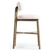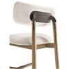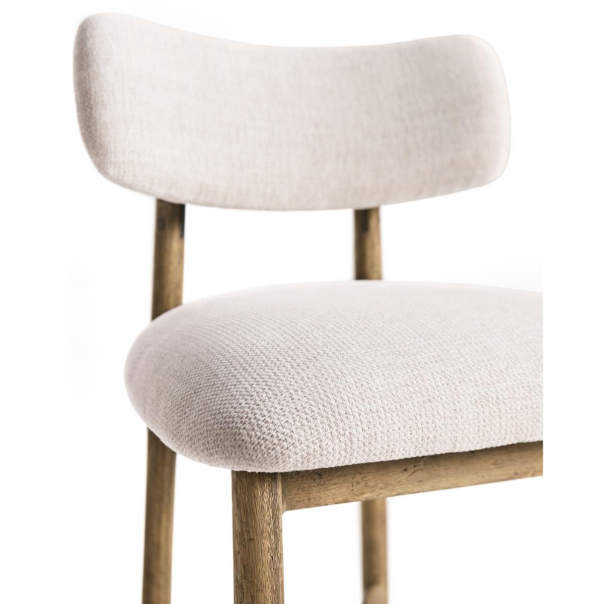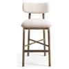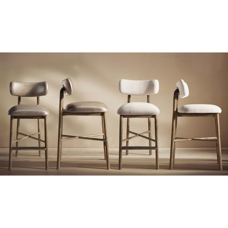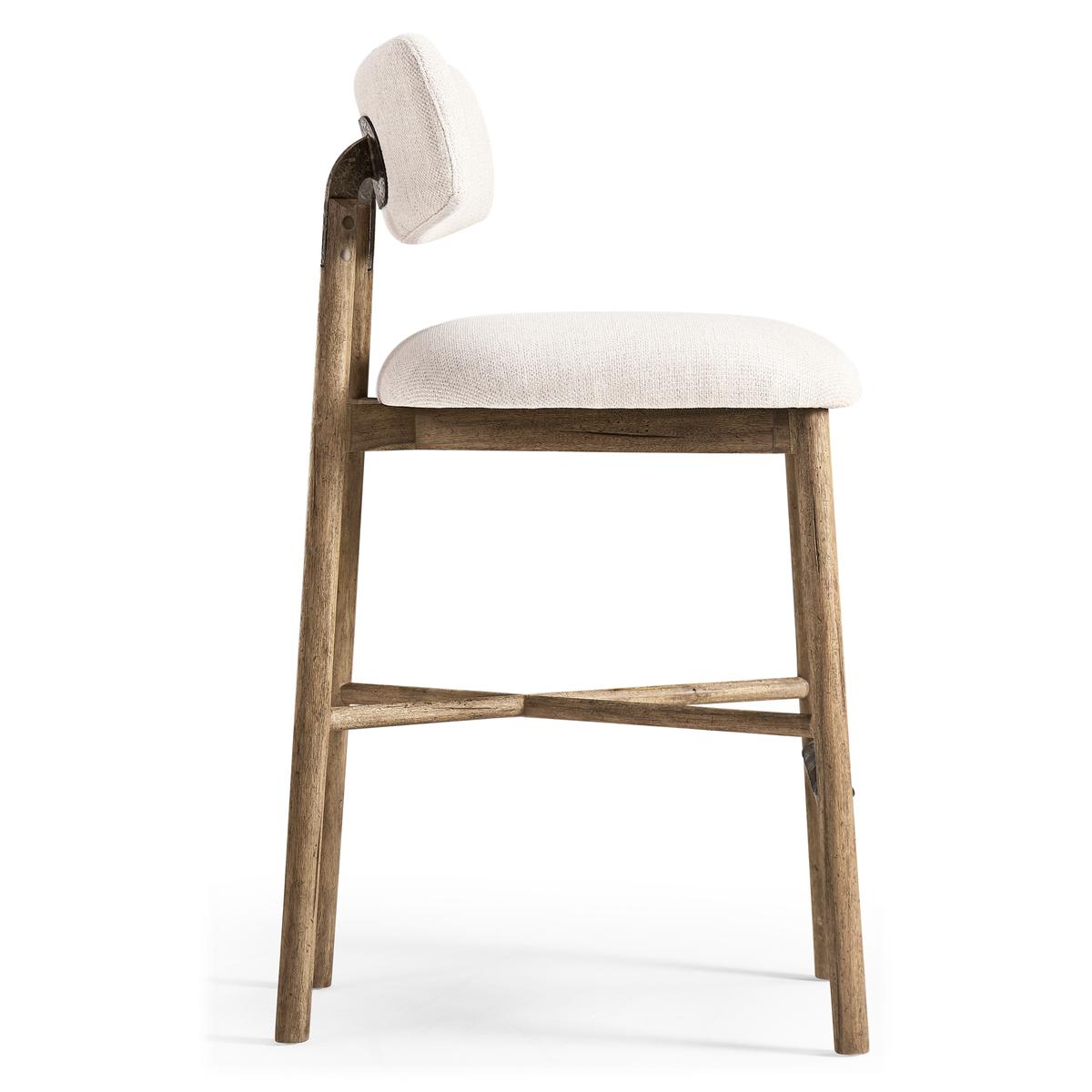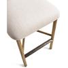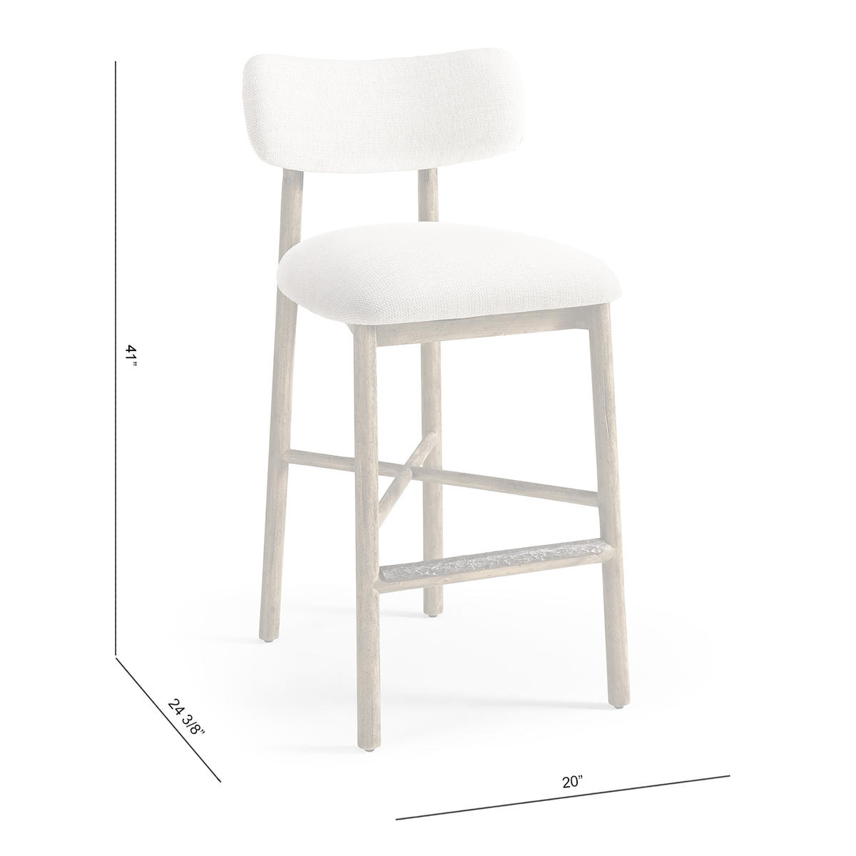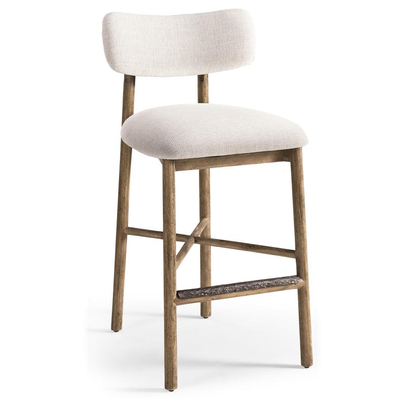 The Stone Ridge Upholstered Bar Stool blends transitional warmth with subtle industrial detail. Crafted from solid acacia wood in the Tully Light Acacia finish, its clean lines are highlighted by exposed stainless-steel joinery. The curved upholstered back and softly padded seat offer comfortable support without adding visual weight, while a protective metal accent band reinforces the footrest and adds a refined material contrast. Balanced and versatile, the stool brings sculptural ease to kitchen and bar settings.