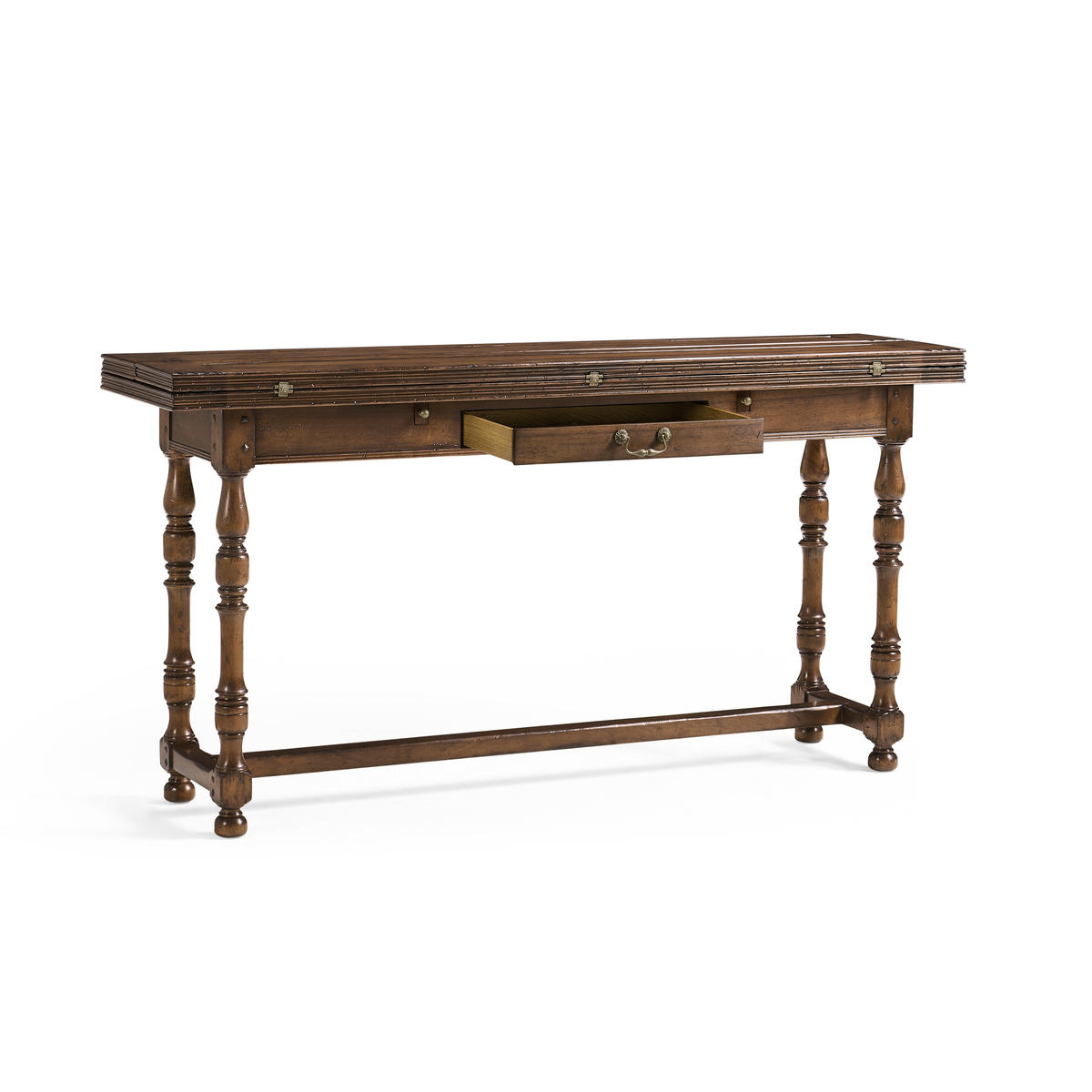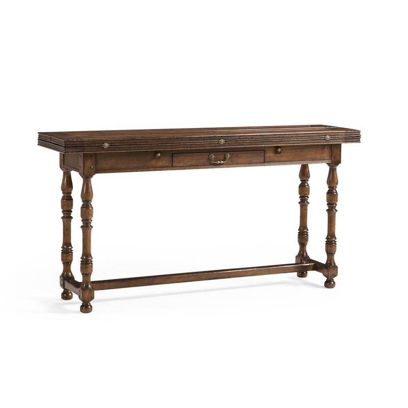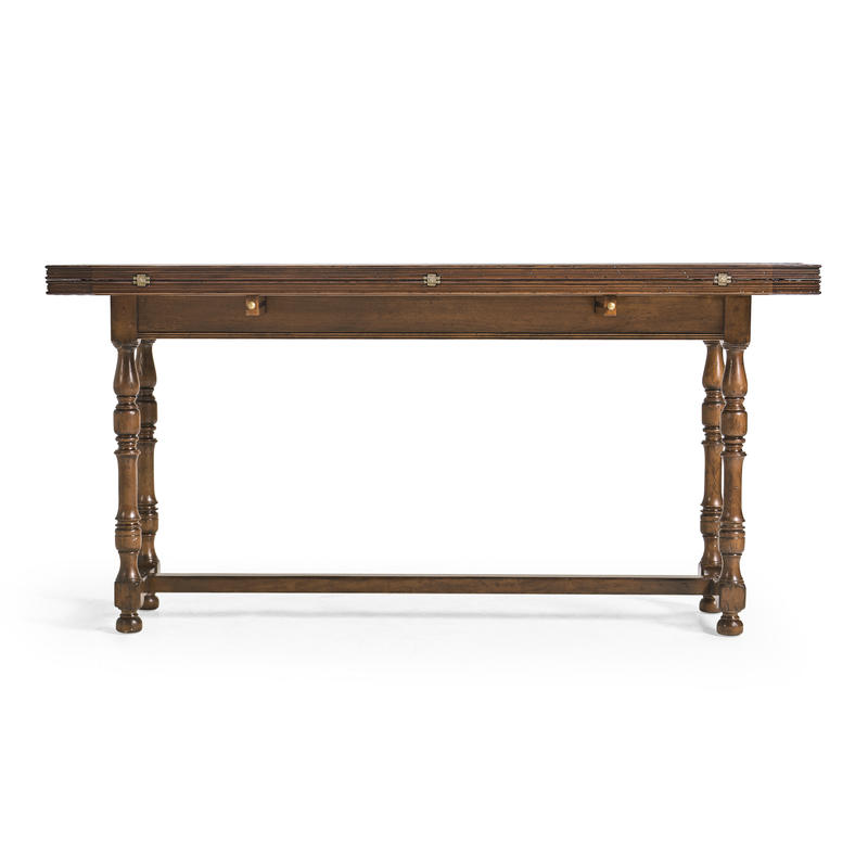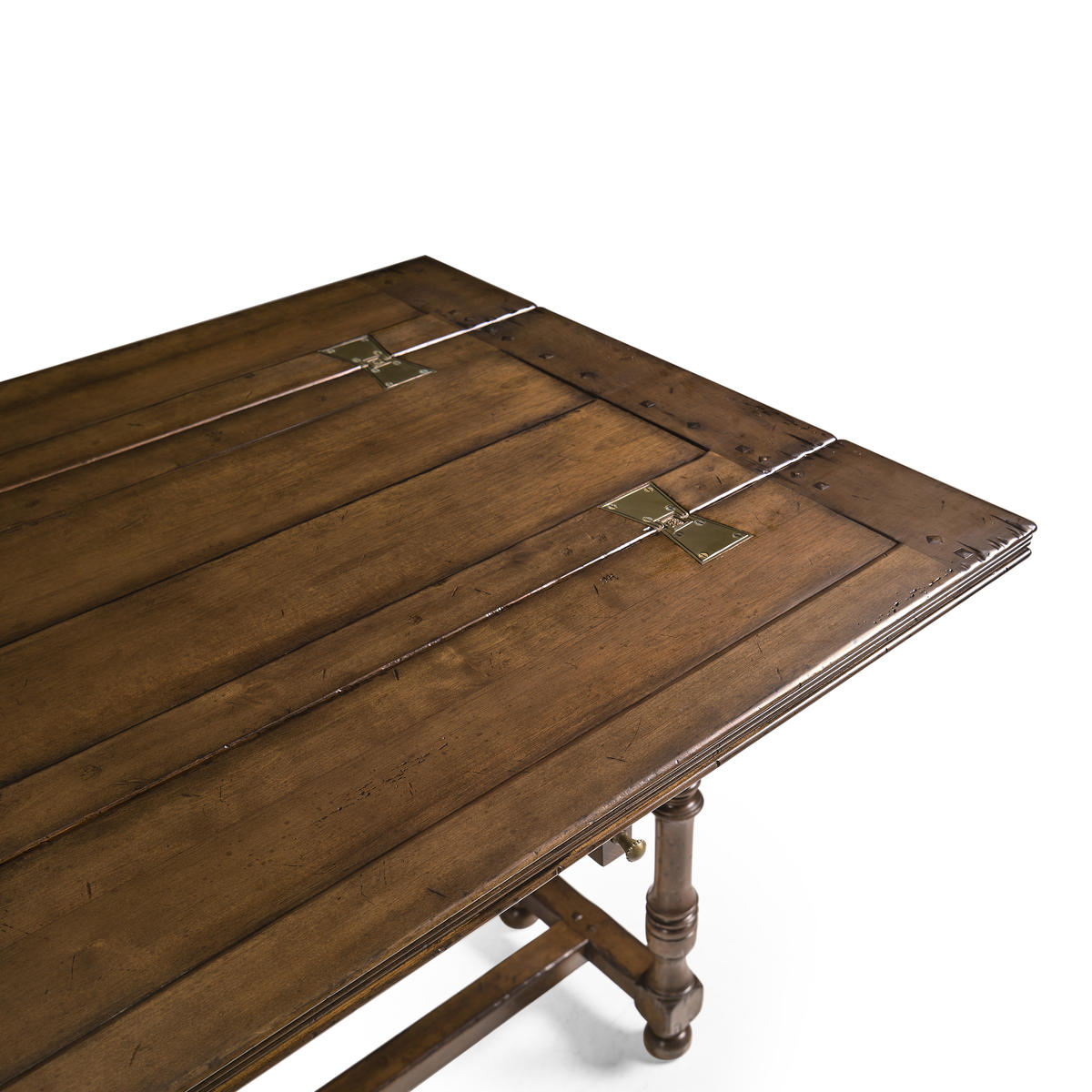 Walnut hunt table that folds out to reveal antique brass hinges and planked top. Seats: 6. (Old salescode: 492704)