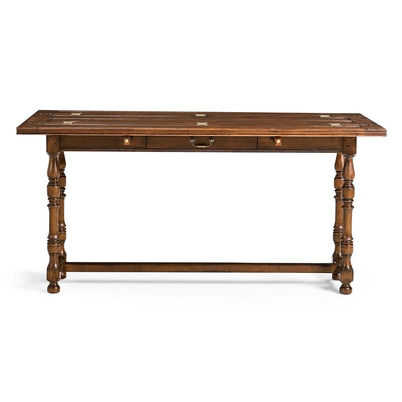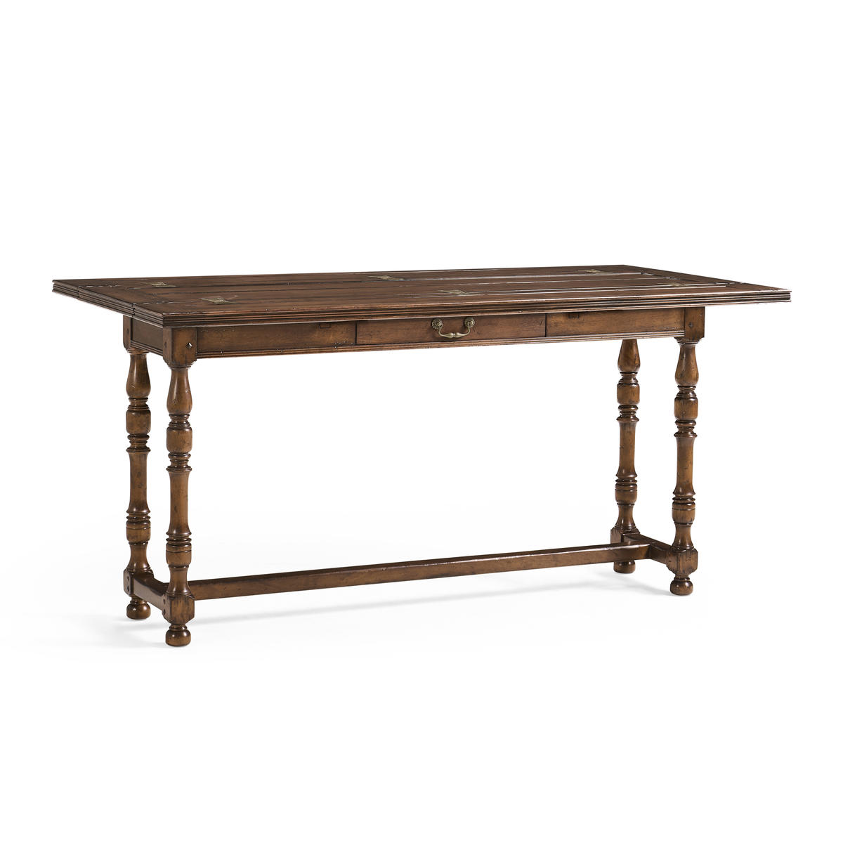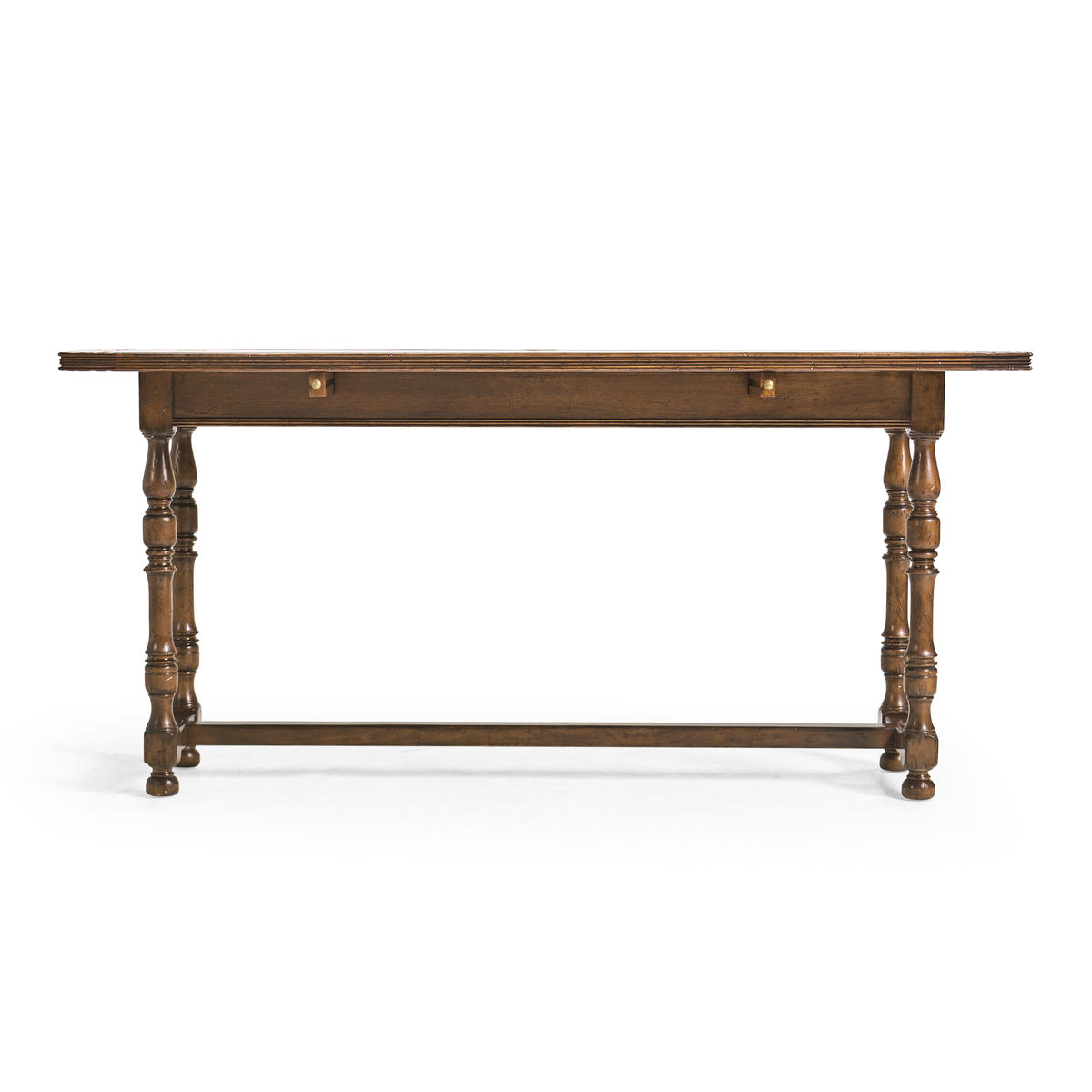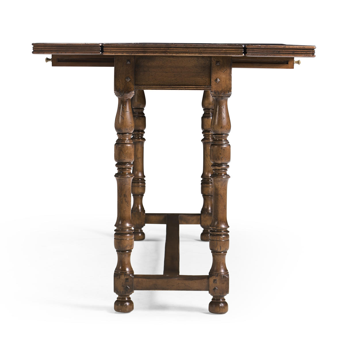 Walnut hunt table that folds out to reveal antique brass hinges and planked top. Seats: 6. (Old salescode: 492704)