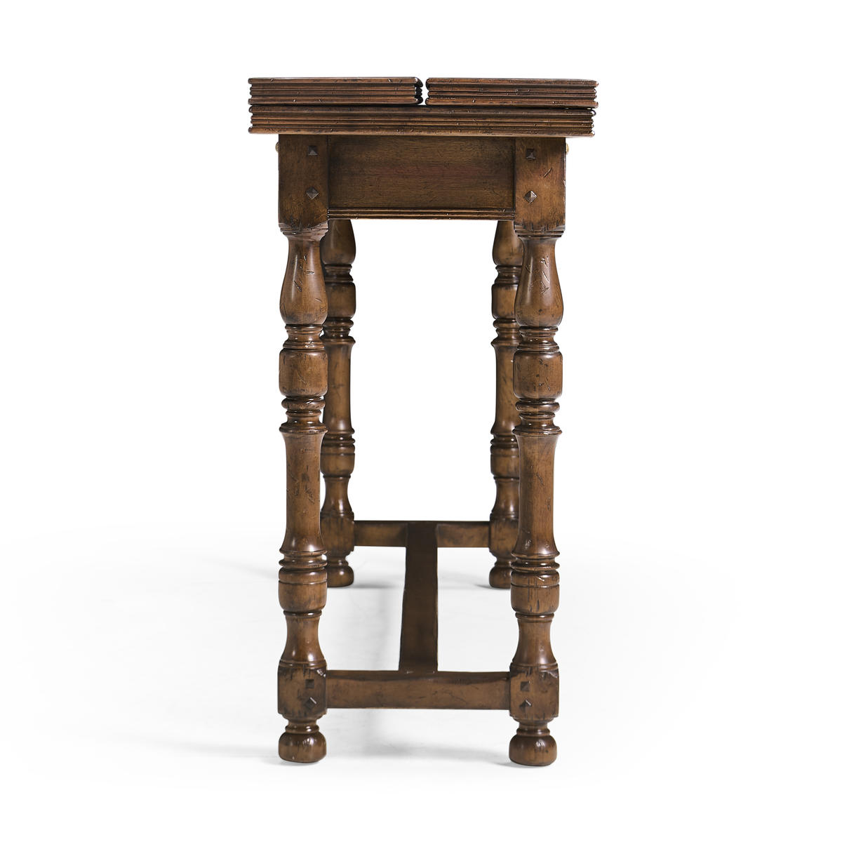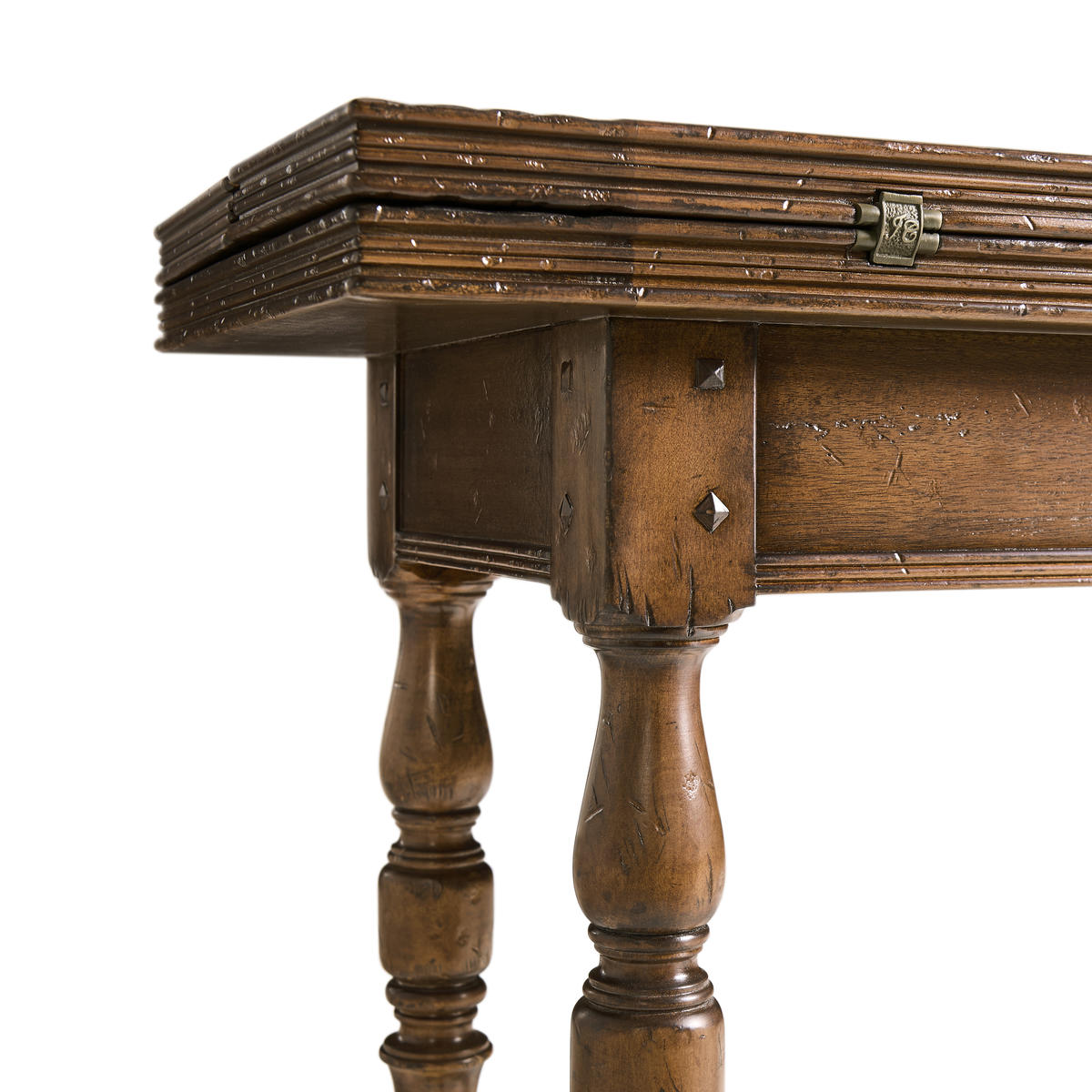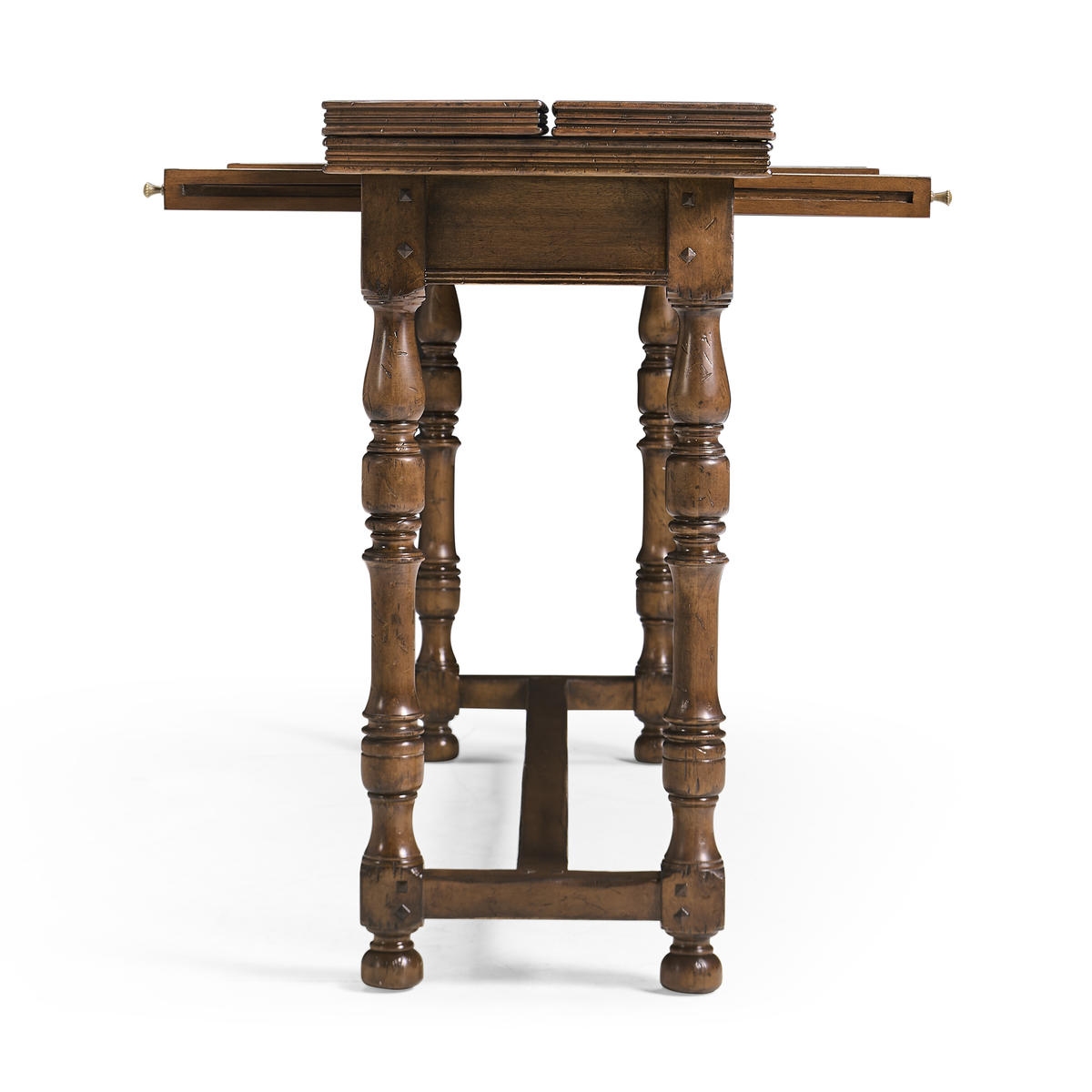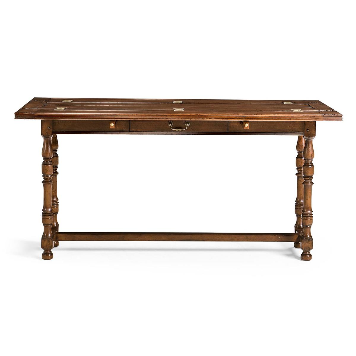 Walnut hunt table that folds out to reveal antique brass hinges and planked top. Seats: 6. (Old salescode: 492704)