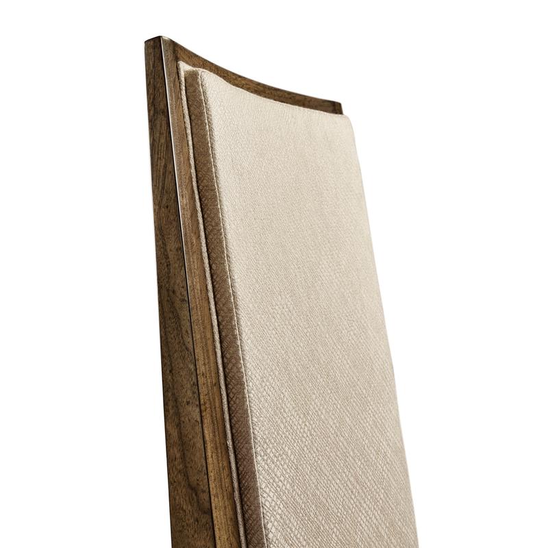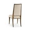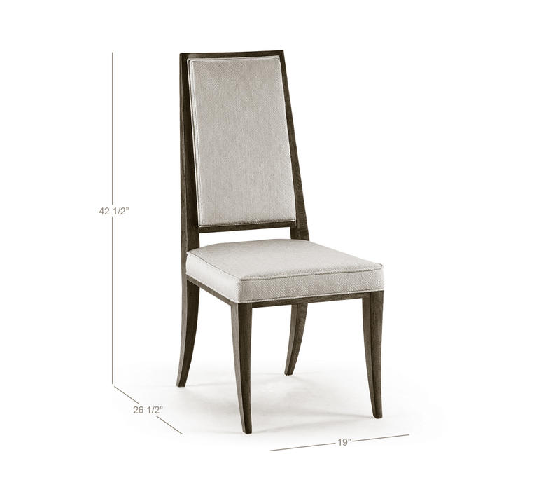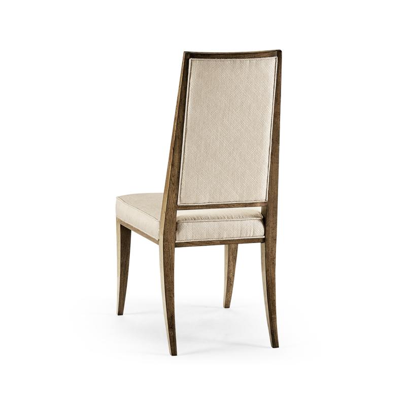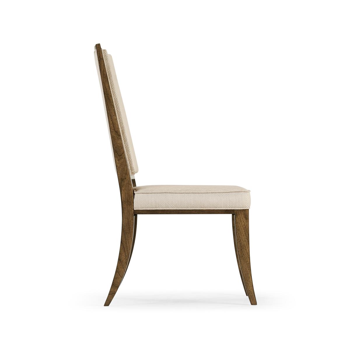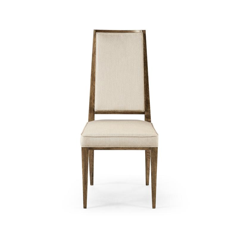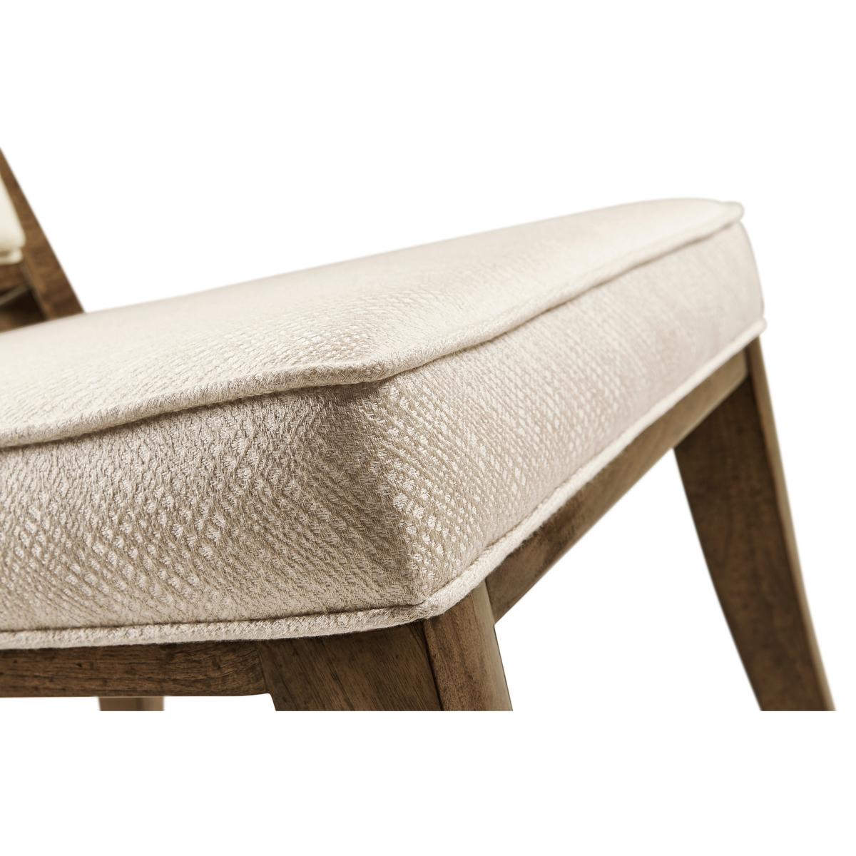 Sculpted from American walnut, with a transparent, hand rubbed finish. This chair is upholstered in a Jonathan Charles performance fabric Skipper.