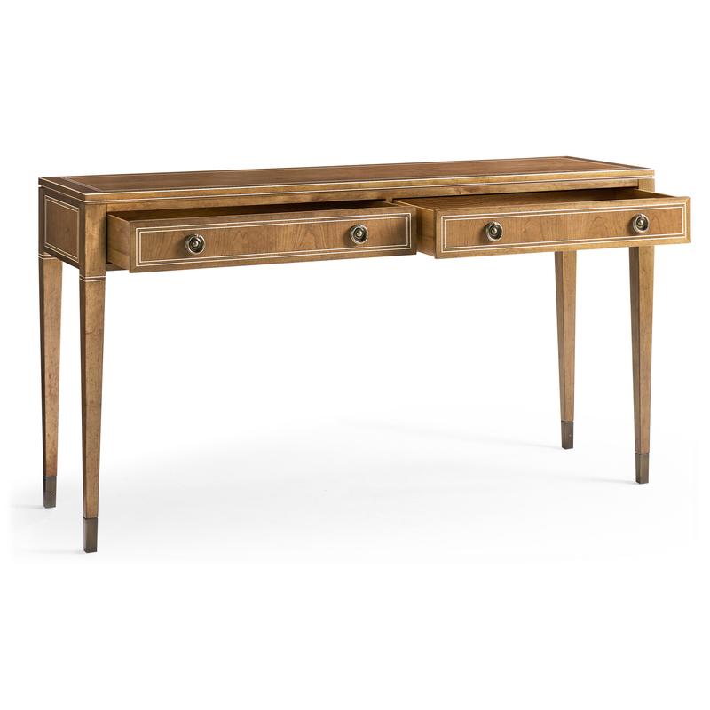 The Sundial Console Table features traditional craftsmanship in a classic design that effortlessly complements a variety of home styles. Finished in warm Sun Bleached Cherry, its classic design exudes a sense of refinement and sophistication. The table features two drawers, offering convenient storage while maintaining a sleek, uncluttered look. Perfect for an entryway or living room, the Sundial Console Table effortlessly combines style and functionality, making it a versatile and enduring addition to your home.