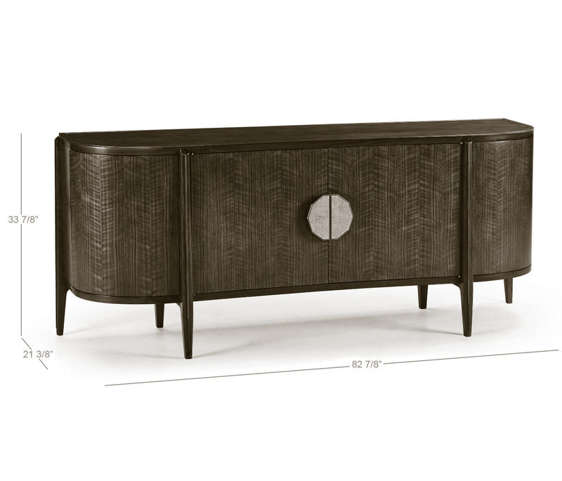 Inspired by the work of the French Modernists, this cabinet is constructed of American walnut with a transparent lacquer finish. Hardware is cast in the Jonathan Charles foundry where it is acid dipped and hand rubbed to achieve a rich, natural patina. Hardware displays authentic duck eggshell inlay.