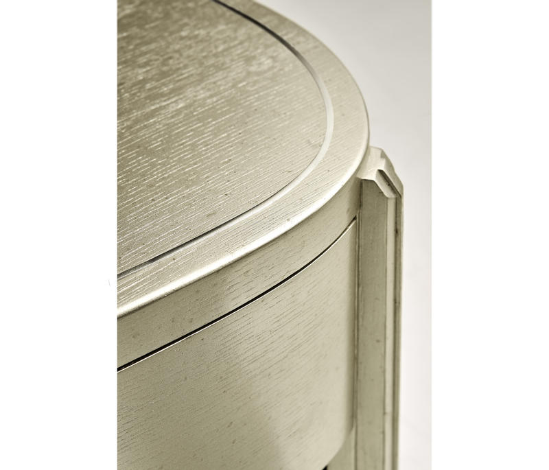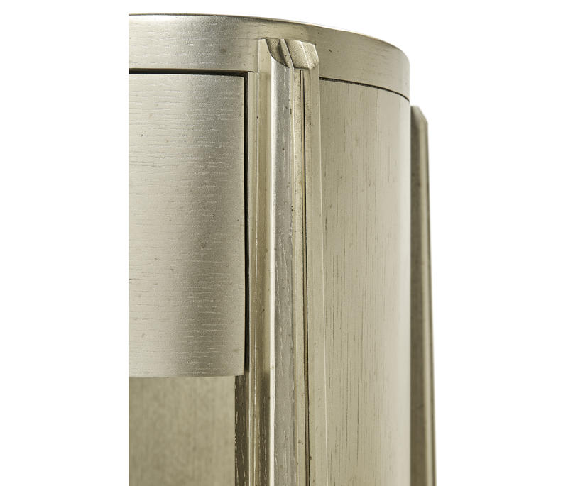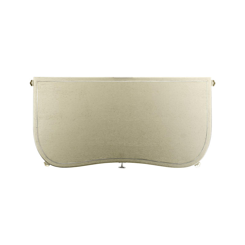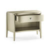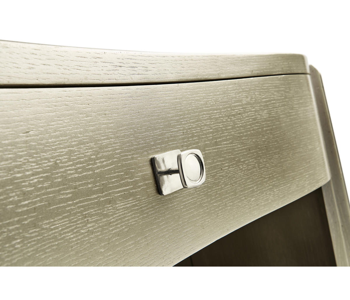 Constructed of American walnut with a transparent, lacquer finish. Top features walnut veneer in a pattern reminiscent of straw work. Hardware is cast from brass, acid dipped and hand rubbed to achieve a natural patina. Drawer box interiors are finished to match the exterior of the chest.