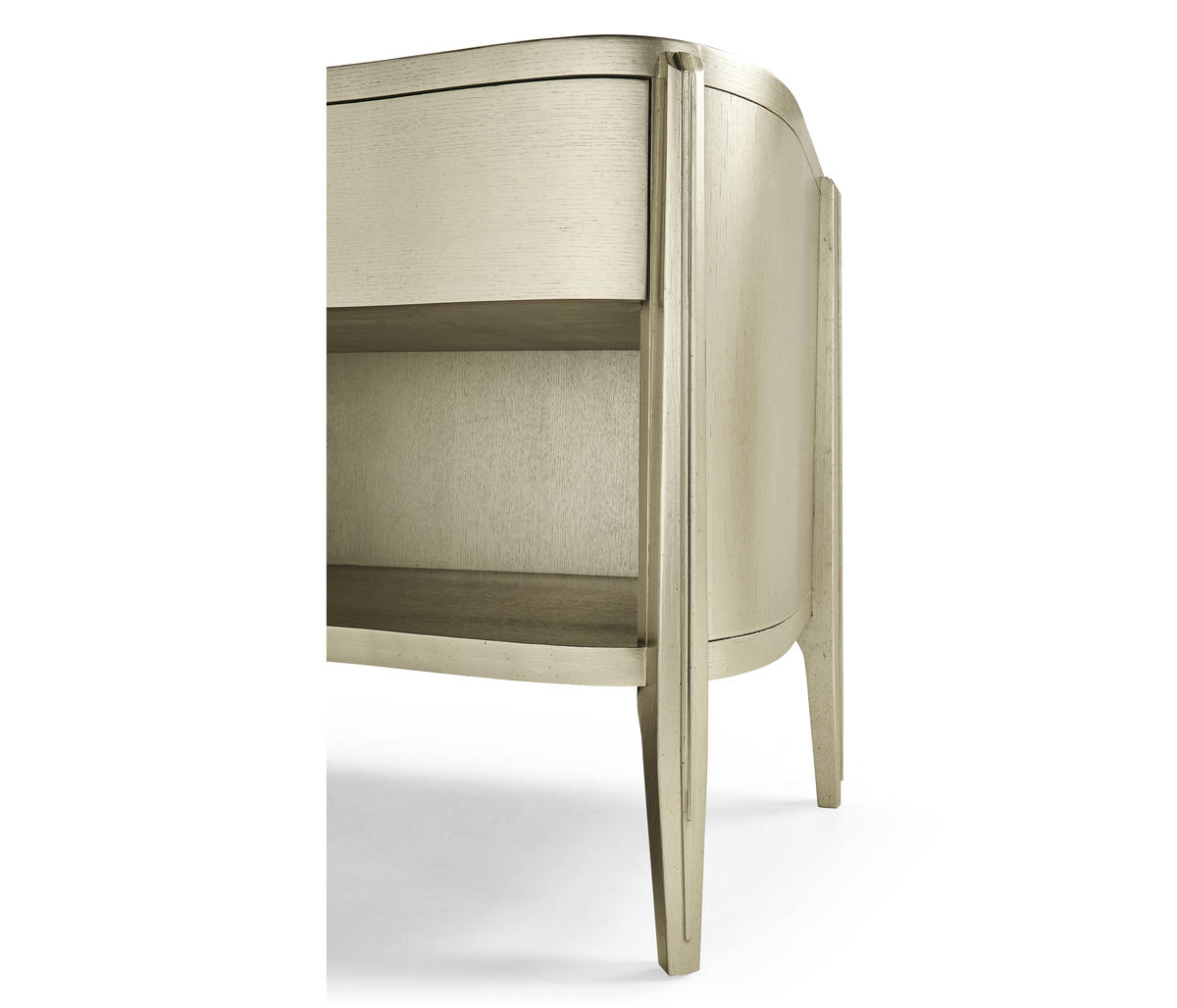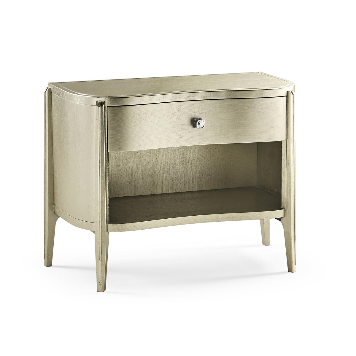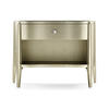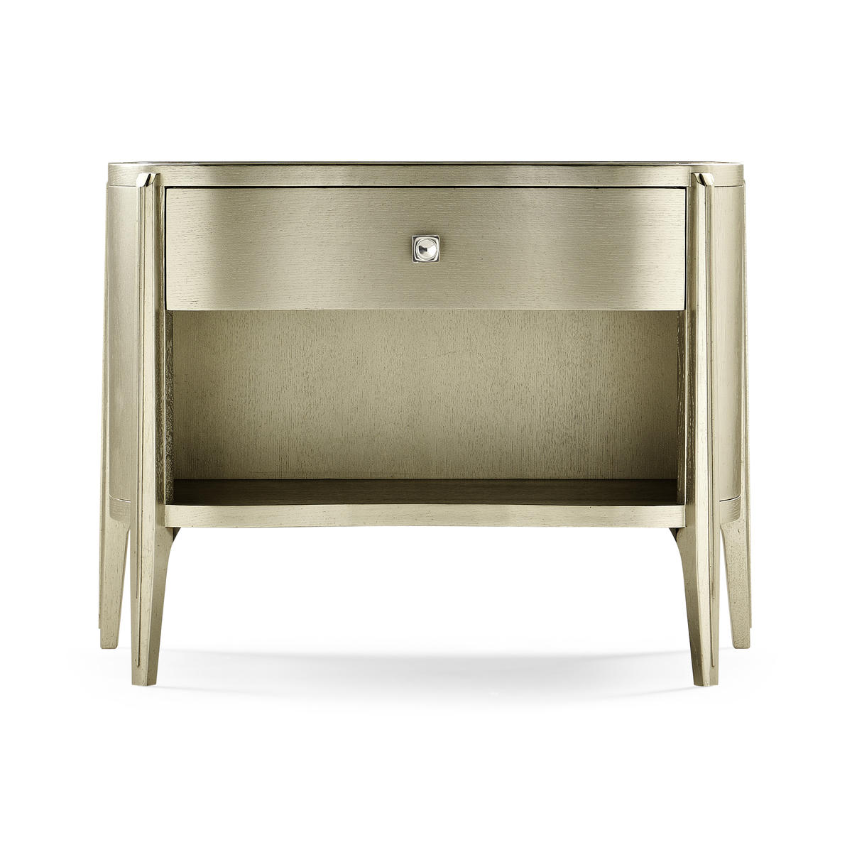Constructed of American walnut with a transparent, lacquer finish. Top features walnut veneer in a pattern reminiscent of straw work. Hardware is cast from brass, acid dipped and hand rubbed to achieve a natural patina. Drawer box interiors are finished to match the exterior of the chest.