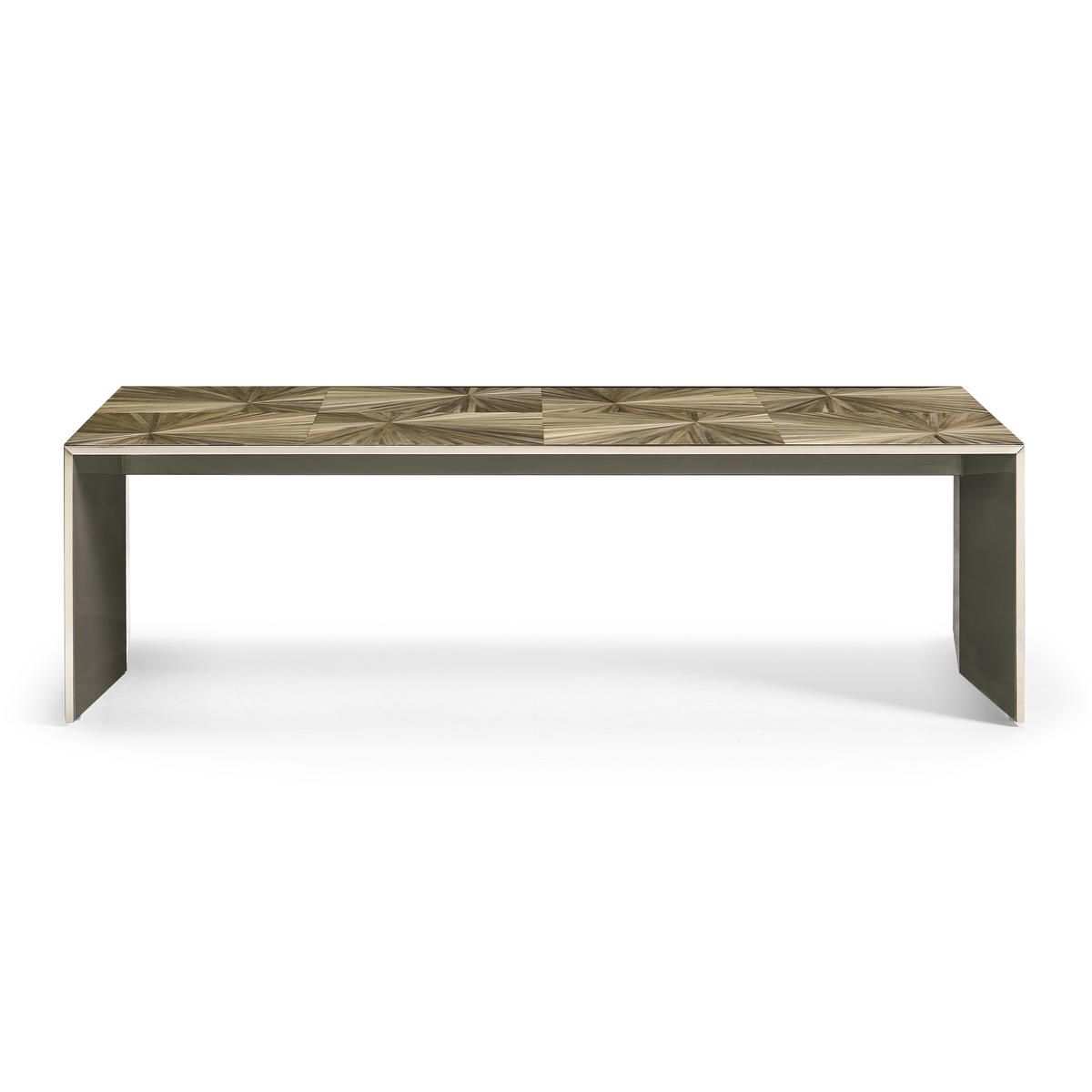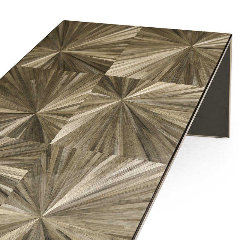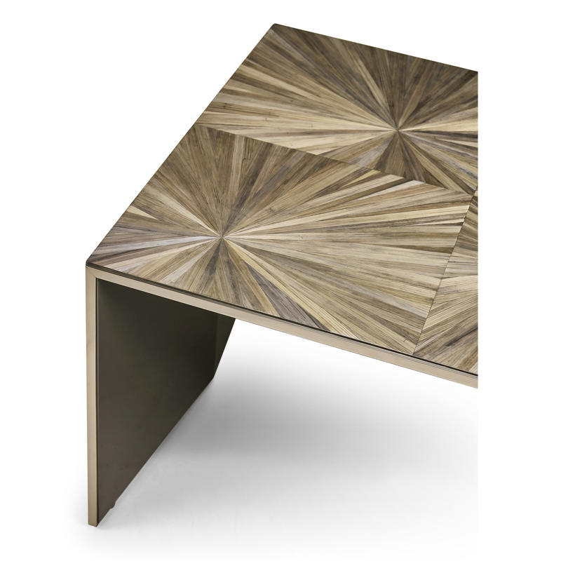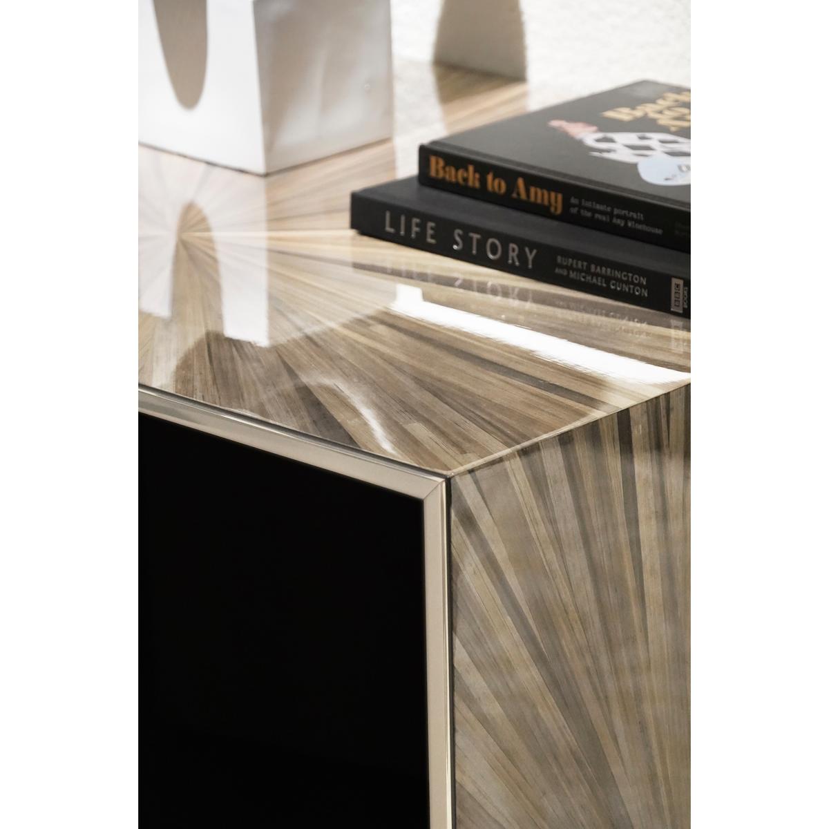 The Terra Waterfall Coffee Table is a masterful example of expert craftsmanship and modern design. Its surface features hand-applied straw marquetry in natural brown tones, creating a captivating, organic pattern highlighted by a high-gloss finish. The base, with its lacquered black interior on the legs, adds a dimensional contrast that enhances the table’s sculptural appeal. With its generous size and striking presence, the Terra Waterfall Cocktail Table is a perfect centerpiece, bringing natural elegance and refined sophistication to the living room.