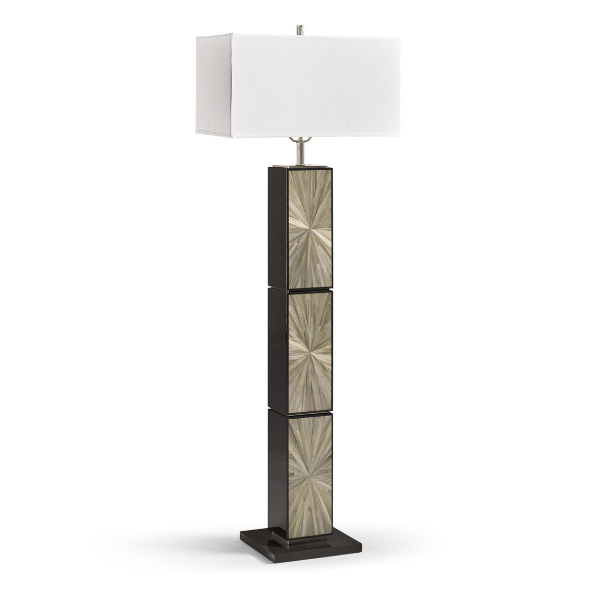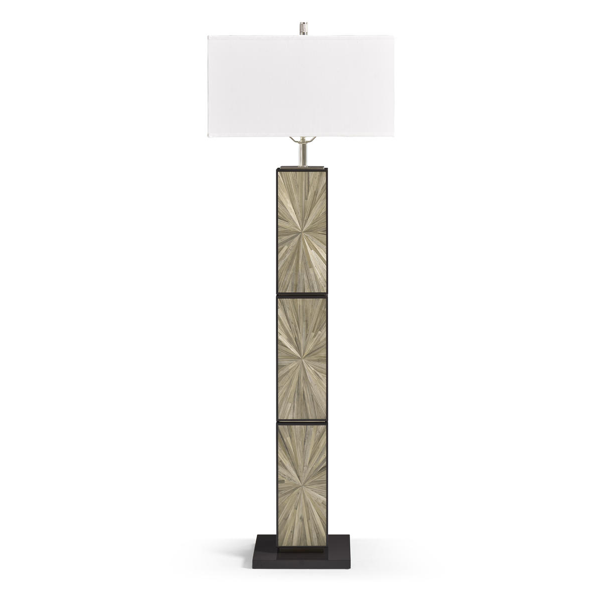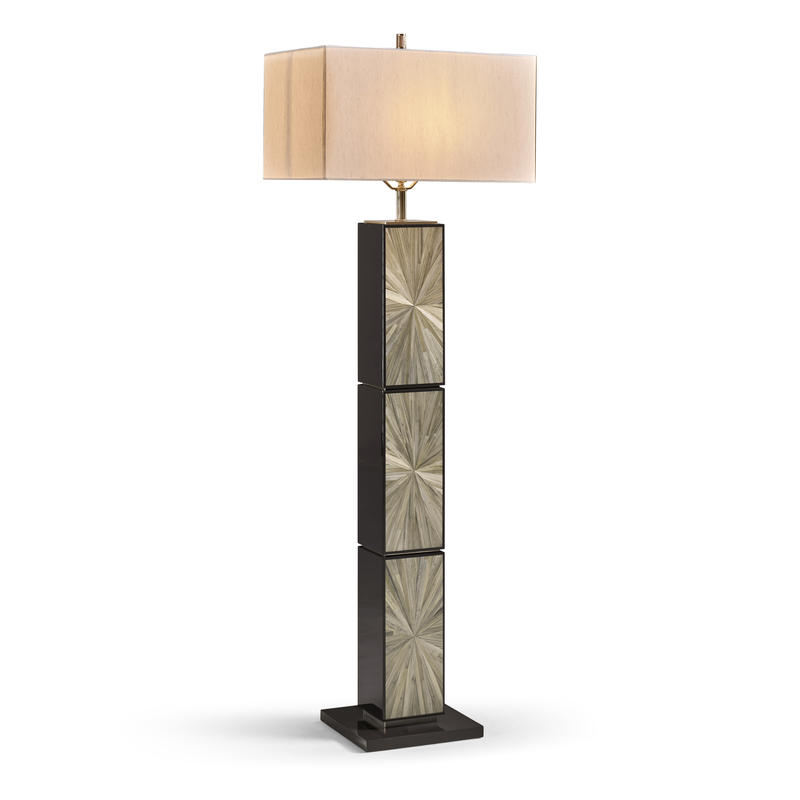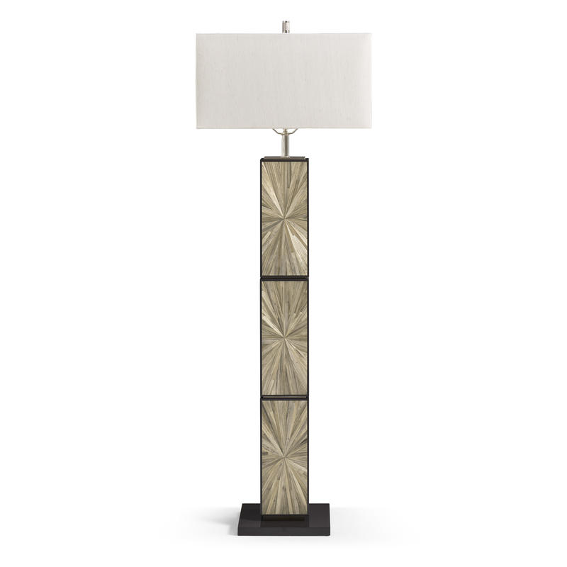 Bold, sculptural, and unmistakably modern, the Terra Natural Floor Lamp commands attention with its rich Natural straw marquetry. The tall, linear base features a radiant, hand-laid pattern that pulses with movement and texture. A rectangular fabric shade and refined stainless steel accents complete the look, offering a stunning statement piece for contemporary living rooms or bedrooms.