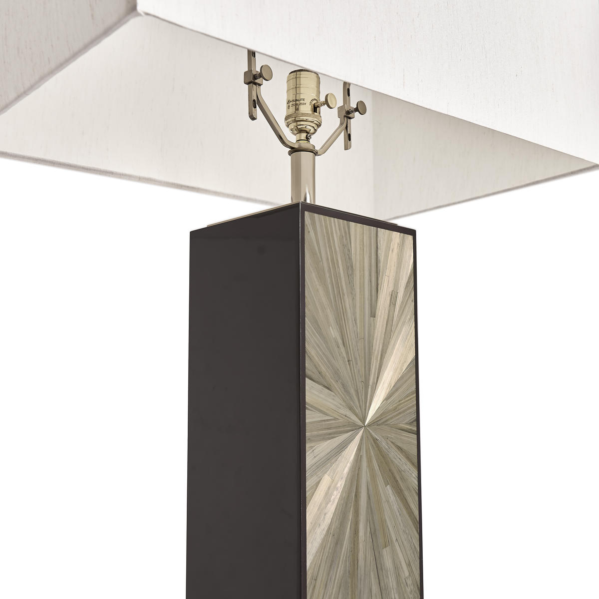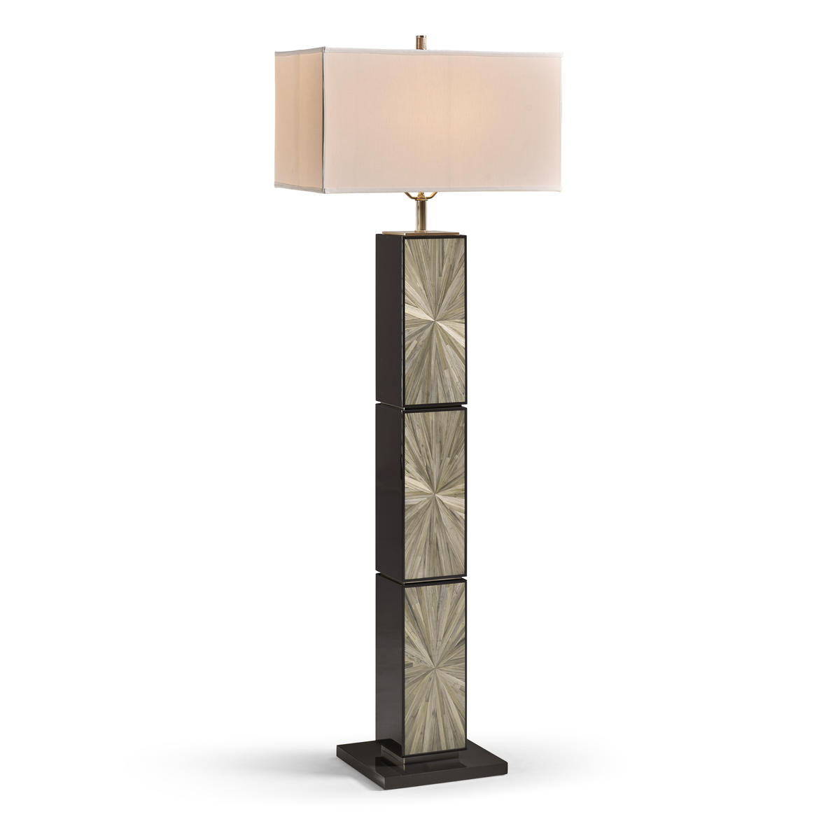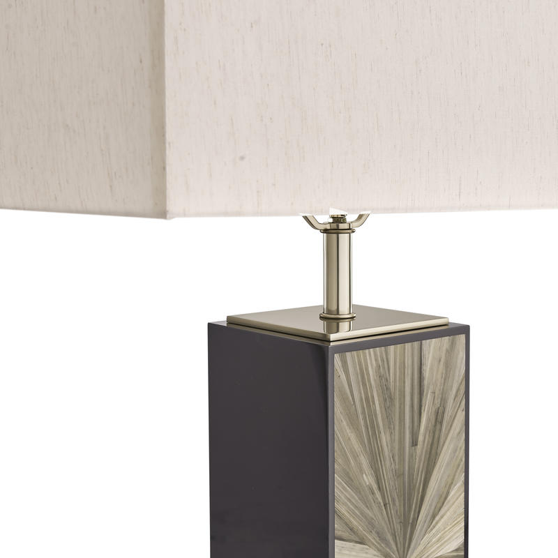 Bold, sculptural, and unmistakably modern, the Terra Natural Floor Lamp commands attention with its rich Natural straw marquetry. The tall, linear base features a radiant, hand-laid pattern that pulses with movement and texture. A rectangular fabric shade and refined stainless steel accents complete the look, offering a stunning statement piece for contemporary living rooms or bedrooms.