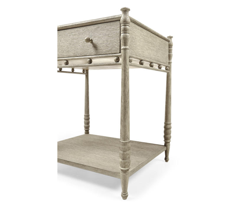 The Morris side table is a new addition to the much-loved ‘greyed oak’ story, harking back to the Morris four poster bed. With it’s exquisite detailing and composition, it really must be seen to be believed. As with everything in our …collected range of furniture, the Morris side table in greyed oak embodies the skilled artisanship, creativity, detail, quality and innovations that lies at the very heart of all we do.